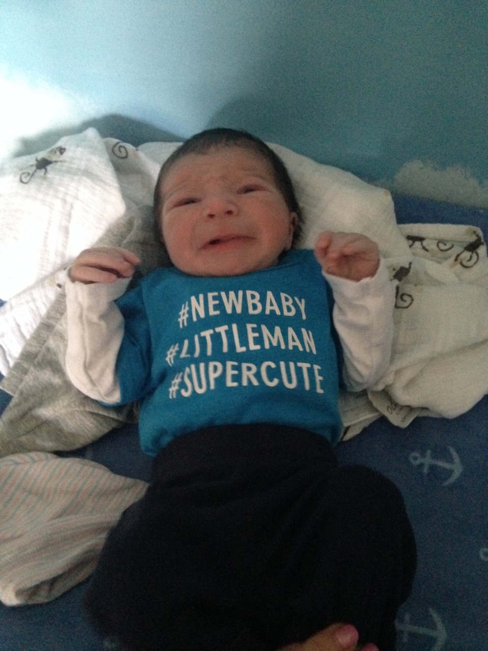 #NewBaby #LittleMan #SuperCute #CryBaby #LittleManLoudLungs #NeighborhoodLoudMouth #Hysterical #Deafening #NotSoCuteNow #ShriekLikeABanshee #CleanMyDiaper #GetMeOuttaThisStupidShirt #WhoHashtagsAShirt #RememberWhenAHashtagWasATickTacToeBoard #Hashtag #IJustHashtaggedAHashtag #MyBabyIsTrending