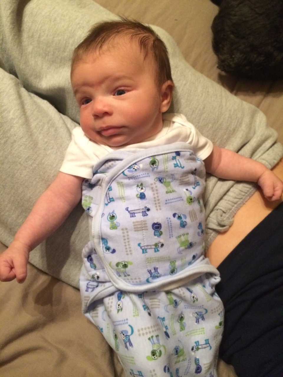 At one point I had this swaddling thing down pat… People called me Abe Froman the Swaddle King from Chicago. I even won 1st place in the swaddle Olympics at baby class. All went down hill from there… I can’t even wrap him once around w/out something coming undone. Now I’m relegated to the minor leagues. Rookie…