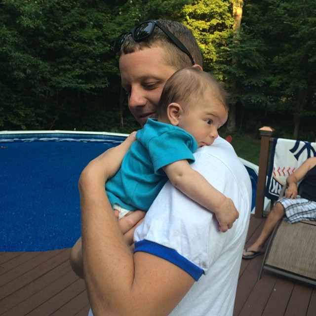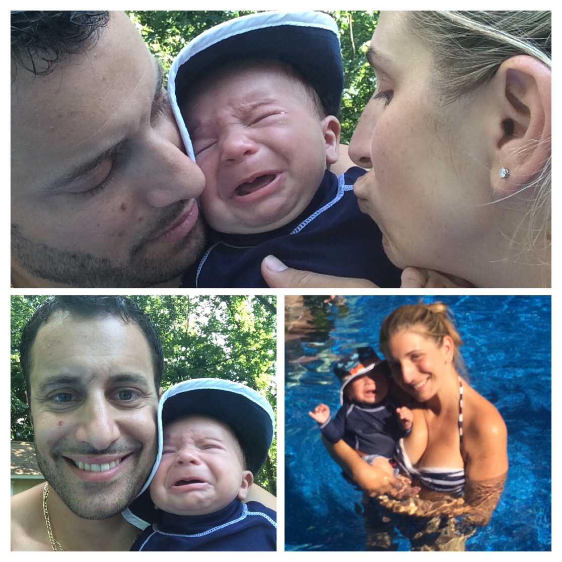 So yesterday was a momentous occasion for Jax… It was his first time in the pool. He was not happy. It was a tough occasion for the little guy, but luckily mom and dad were there to capture it step by screaming step! It was a cool family moment for (everyone) mom and dad. So cleary we can cross Olympic swimmer off the list of possible scholarship possibilities.