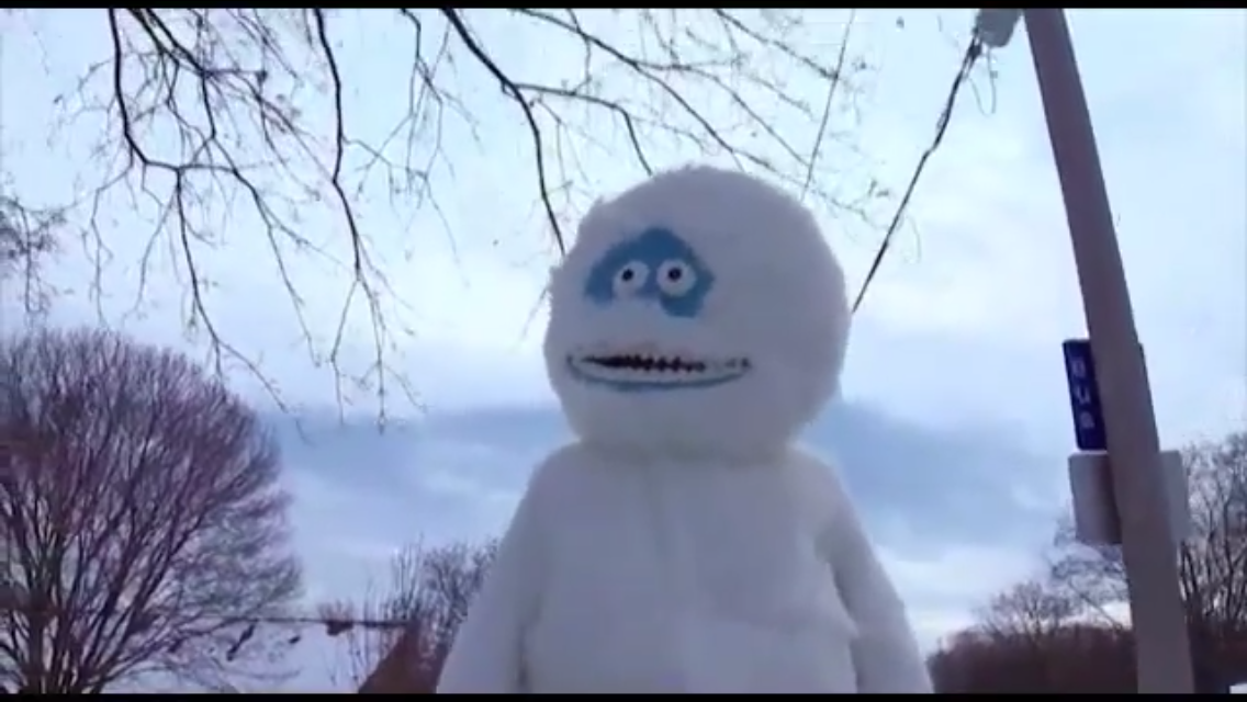 And now… After seeing this… I’m moving the family there. NOW. We’ll send for our stuff. The Abominable Snowman, The Bumble himself just out for a stroll on a Wisconsin sidewalk and no one cares. It’s just normal Wisconsin. Gotta go pick up my kids from school or grab some cranberry juice from the store… But first let me grab a quick selfie w Bumble.