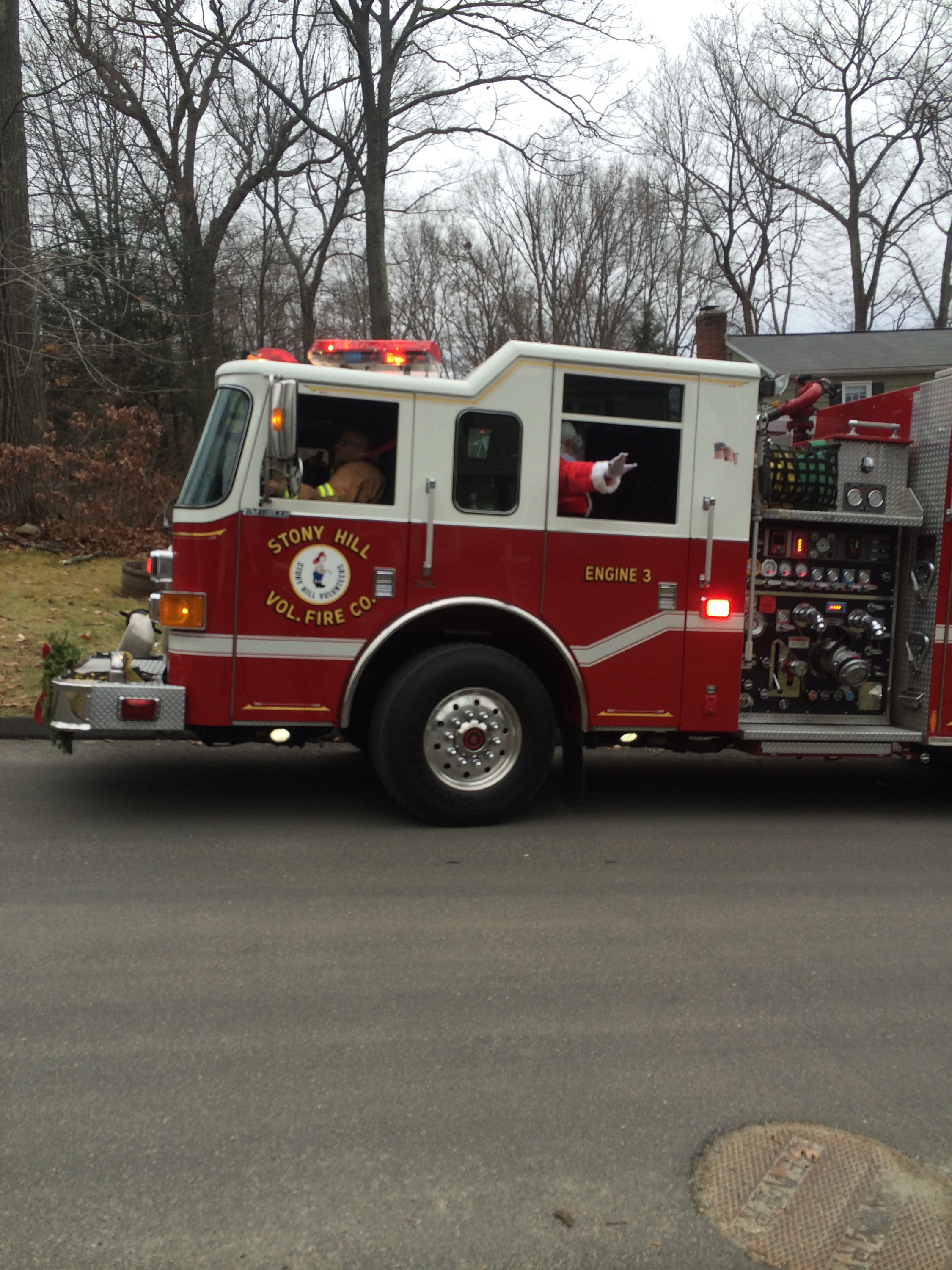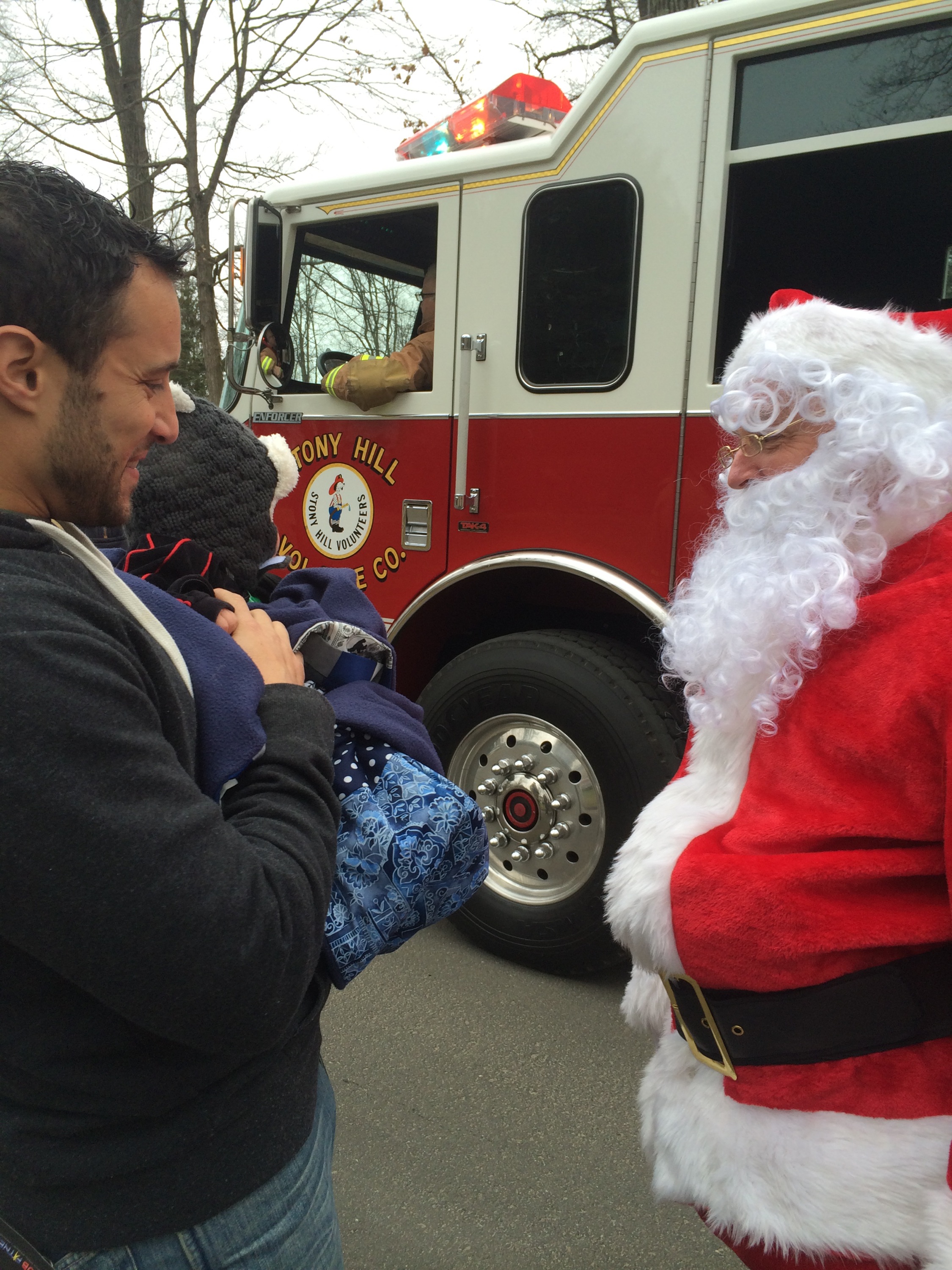In keeping with a Stony Hill (Bethel) tradition Jax got to meet Santa on the Stony Hill Fire Truck outside my parents house. He was making his last few rounds before heading back to the North Pole for final XMAS prep.