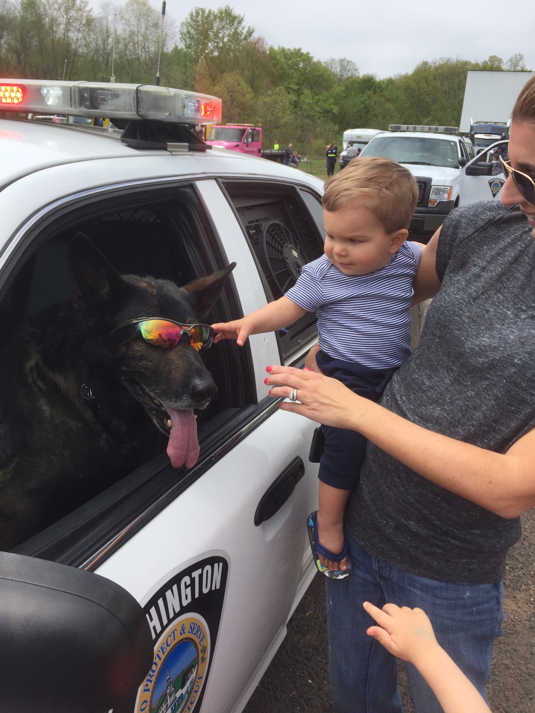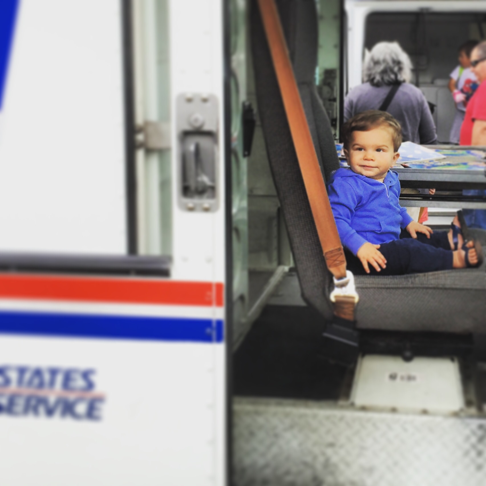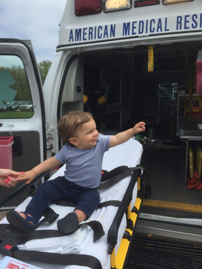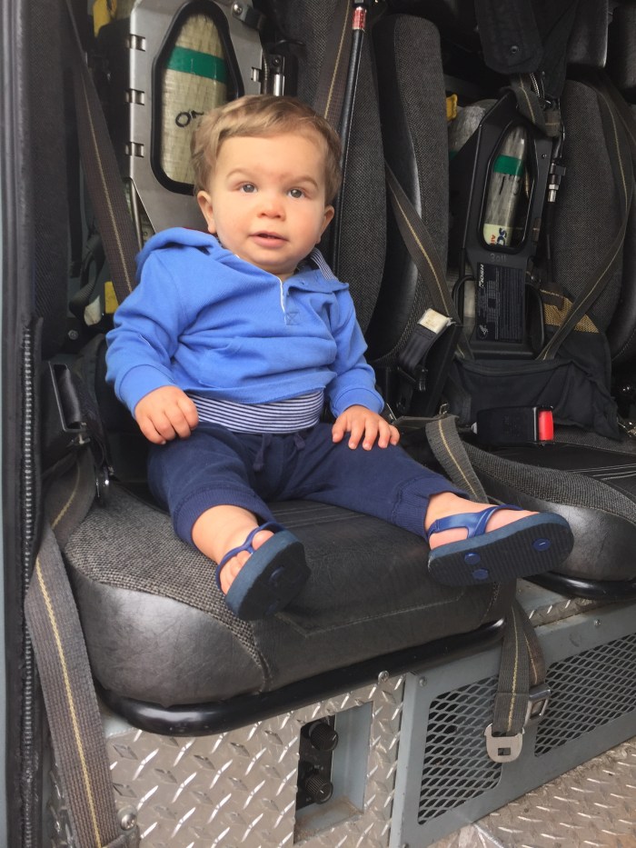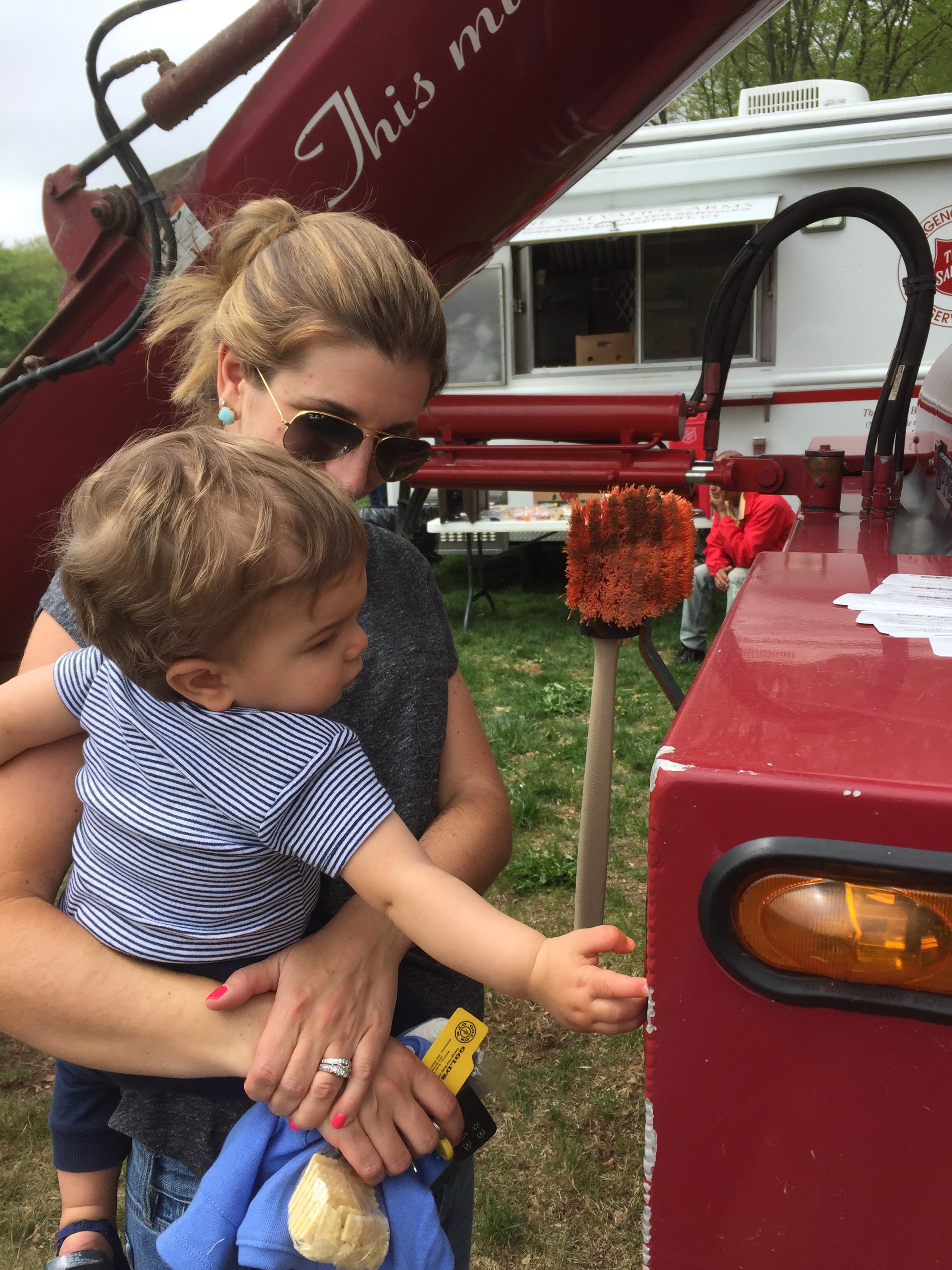 Typical little boy… Loved playing with all the trucks at the “Touch a Truck” event.