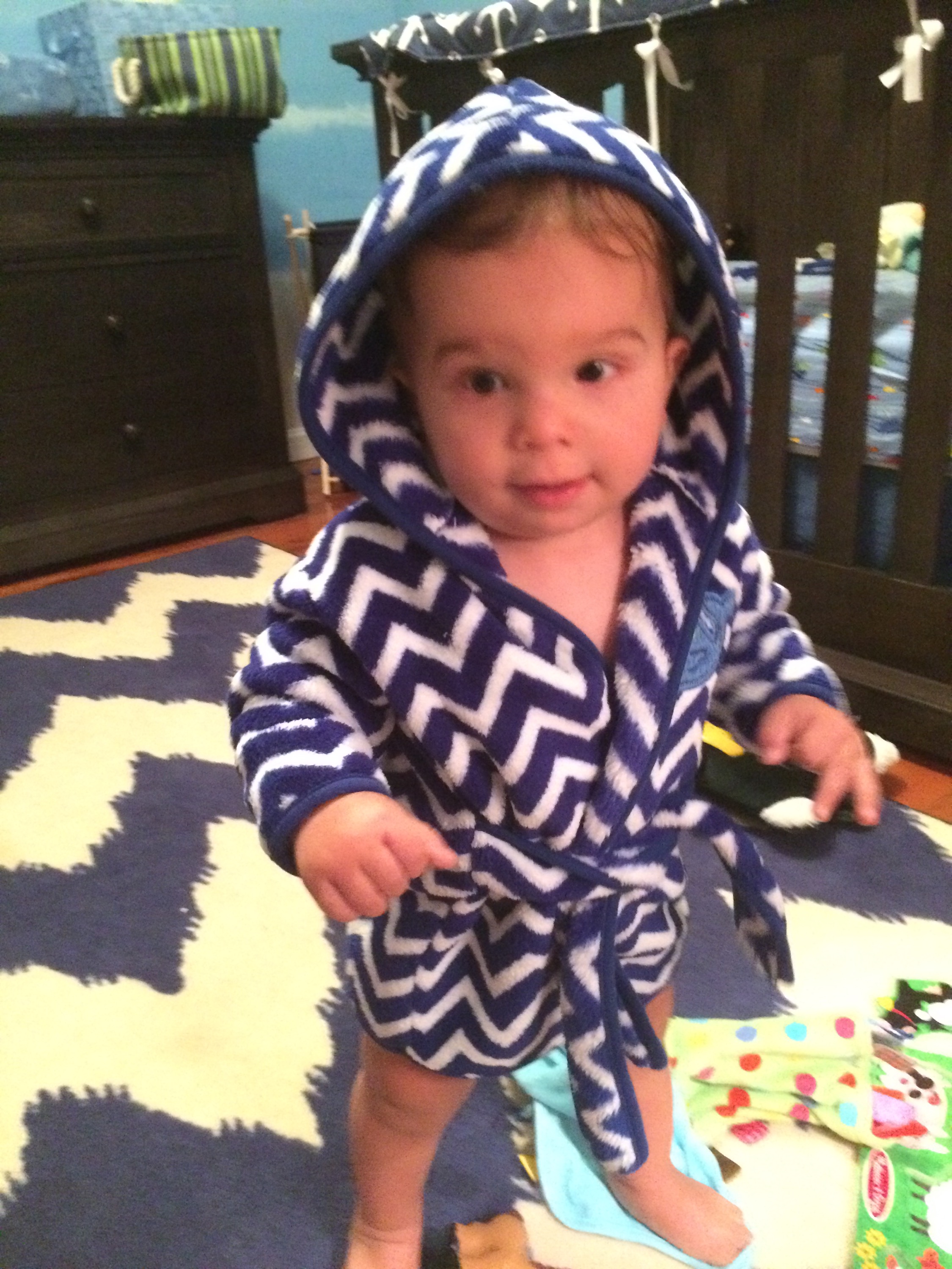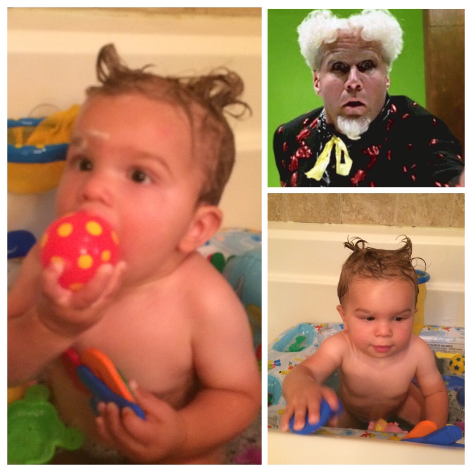 Shower? Why not… Quick and easy… Problem is you can’t put a one year old in the shower alone. (I think it’s like a gremlin). So that brings us to today. I hesitated… But in the end decided to get in the shower with Jax. Many things ran through my mind… What if he pees on me? What if he sees “it”? Are there laws against this sort of stuff? Creepy I know… But there even came a point where I thought maybe we should both be in a bathing suit (see above clip from Big Daddy).