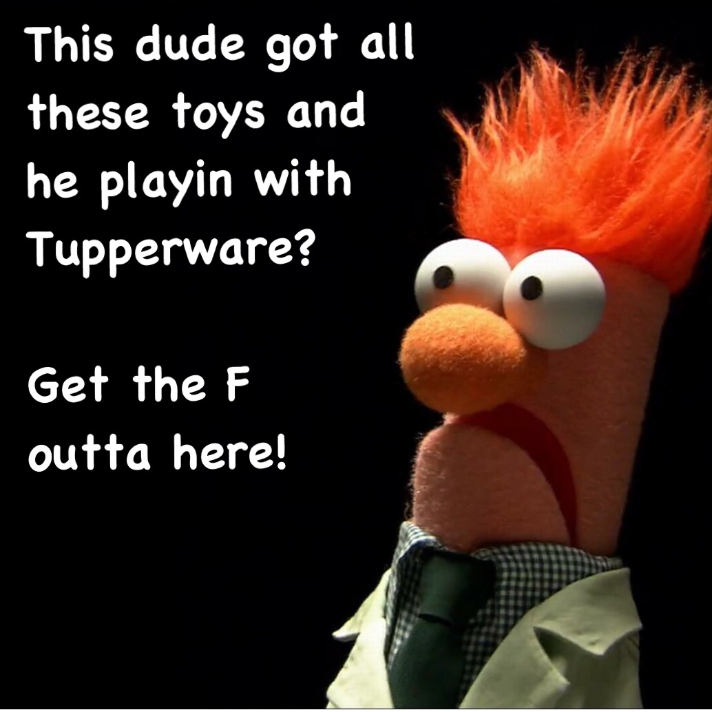 How do I know this… Because our house looks like a Toys-R-Us outlet store and all he wants to play with is a bunch of Tupperware.