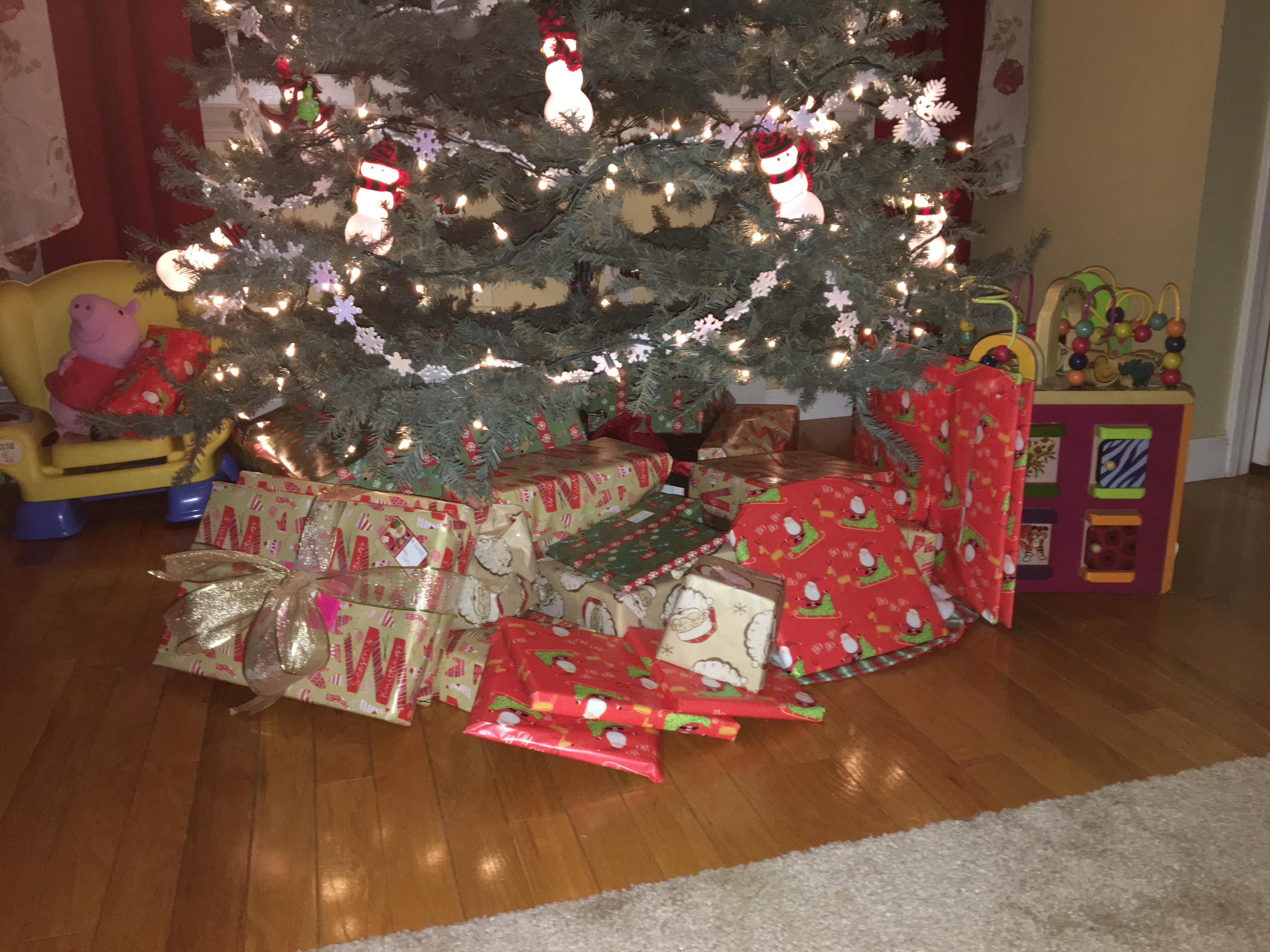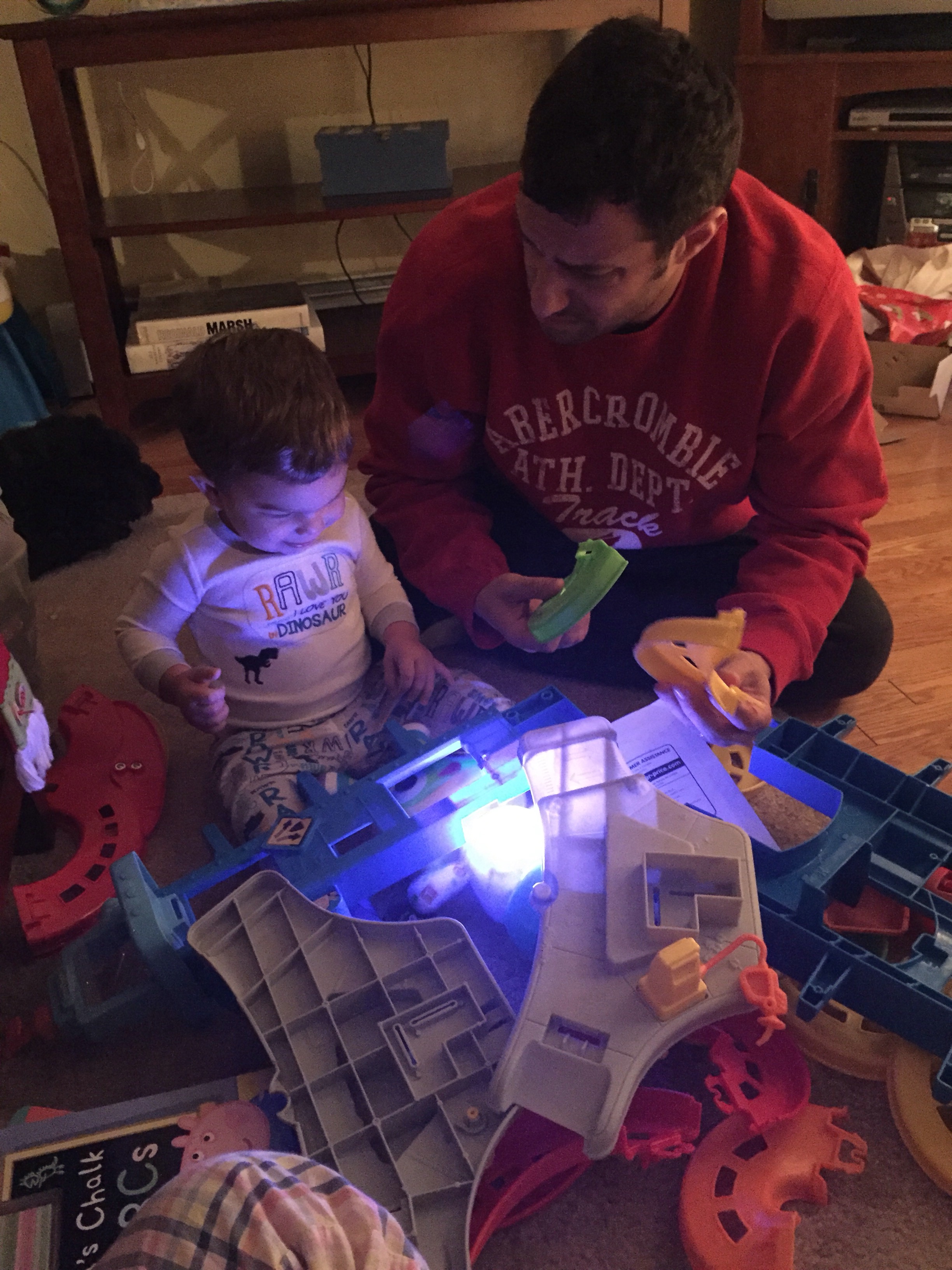 As I lay there sweating in my boxers and tank top my mind raced with images of the unassembled VTech race track and Peppa Pig’s Train my heart suddenly stops as I realized the countless hours of construction that were ahead of me.  Santa decided he’d wait until Christmas morning to put everything together.