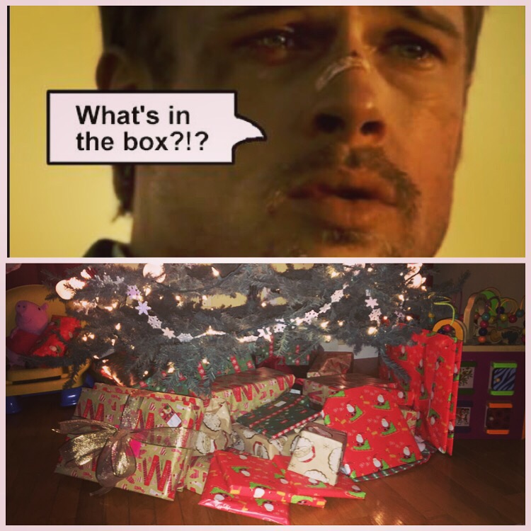 But either way here we are… And I will find this person responsible for my gifts this year. I stalked my prey. Walked in and out of gifts… Shook a few with my name on them and even tried to get Jax to do some spying for me. Too bad he was surrounded by a Toys-R-Us warehouse-like present pile. I knew at that point I was on my own.