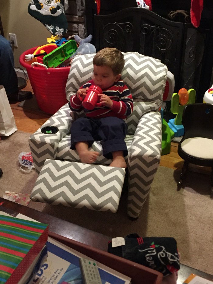 It was then I looked over at Jax who was getting comfy in his new recliner and I set myself to what Christmas is really about… Enjoying my son’s reaction as he unwrapped toy after toy after toy.