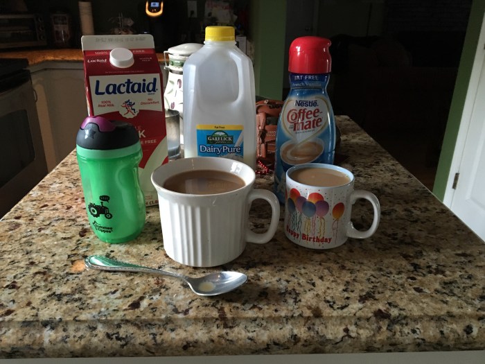 At the kitchen counter, there were three cups. Jacksonlocks was hungry. He tasted the drink from the first cup.
