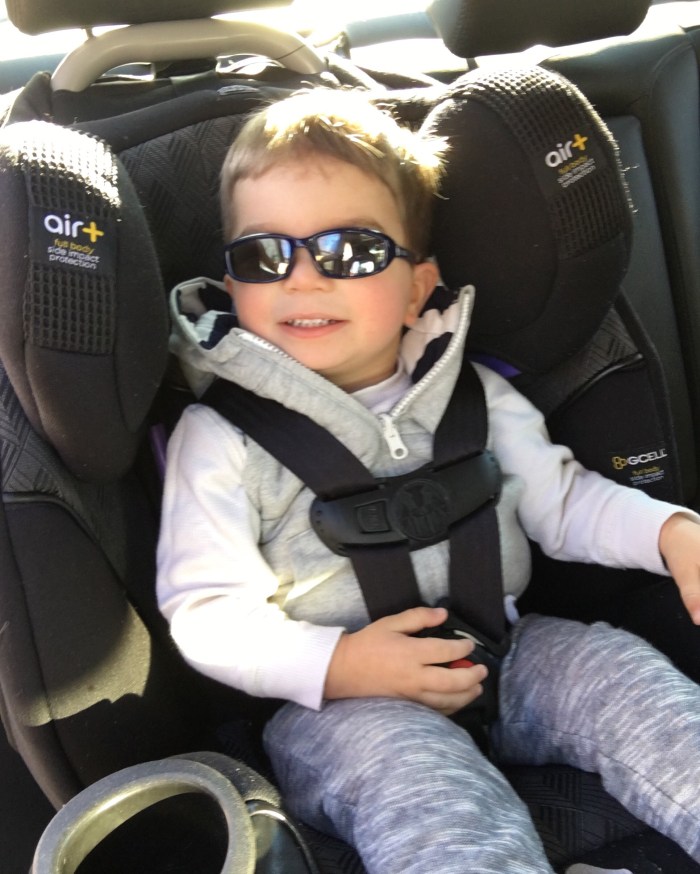 Big boy wearing his big boy shades… first day in his front facing car seat.