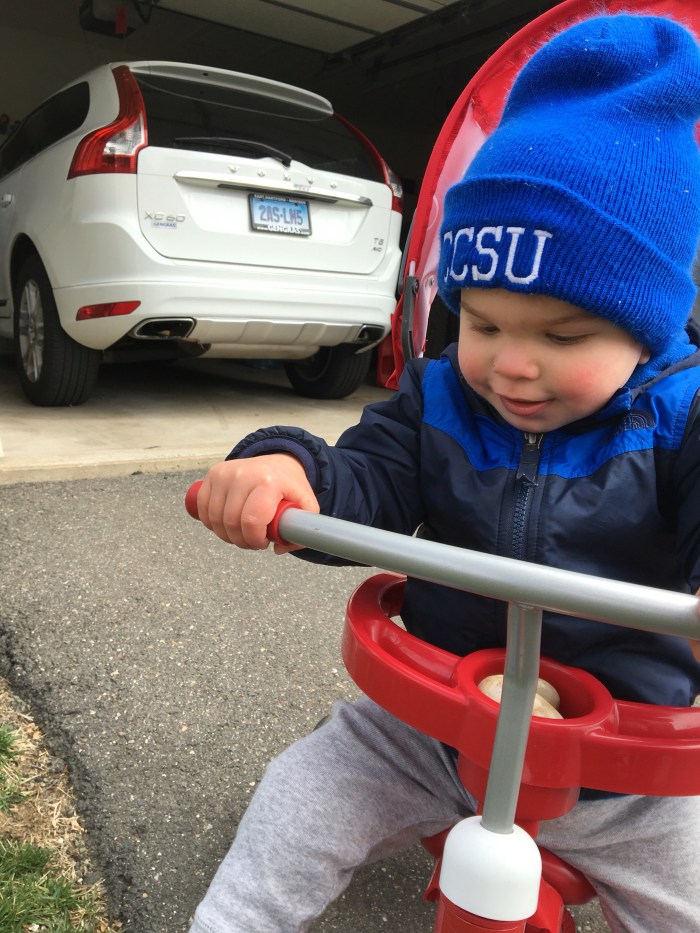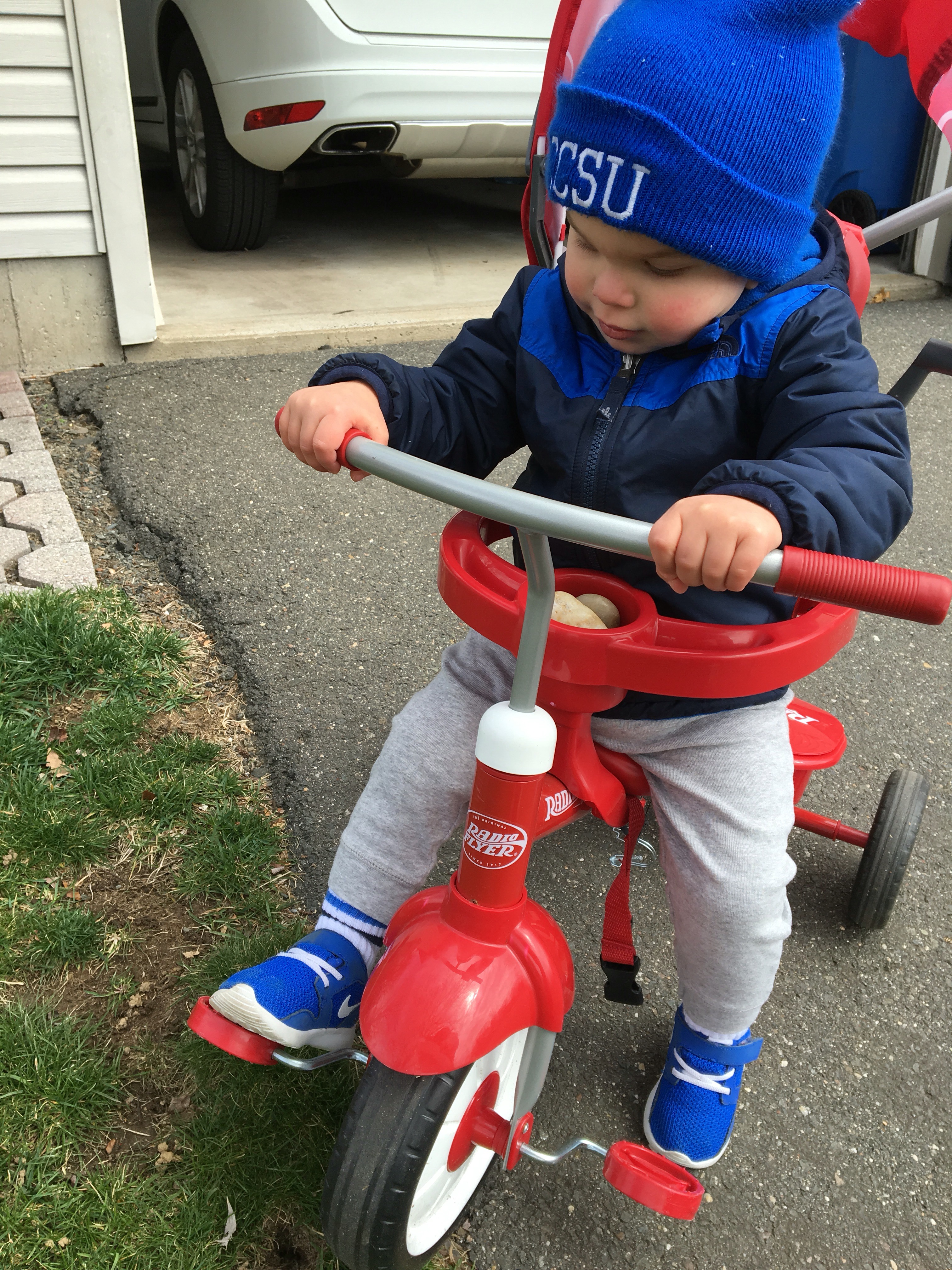 How did this kid get so big? I feel yesterday I was watching him sleep in his little motorized swing (which by the way was a lifesaver)… And now I’m watching him try to learn how to pedal his tricycle.