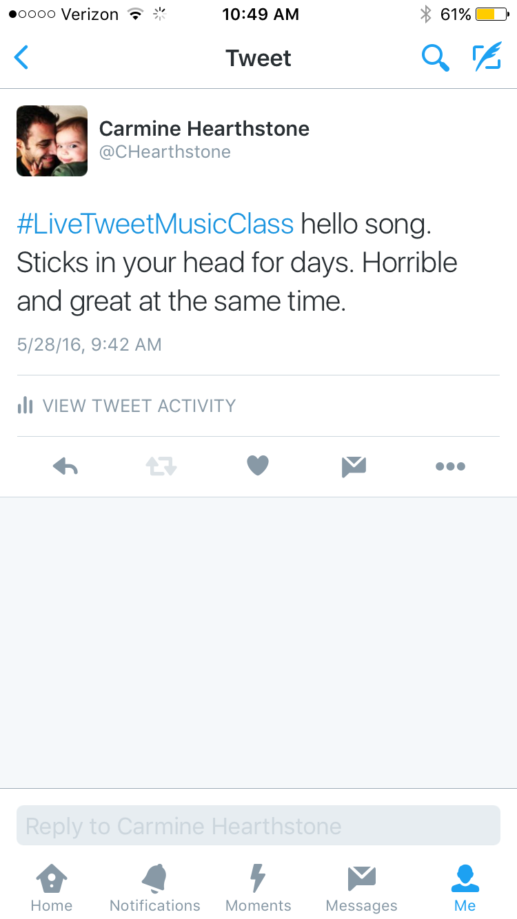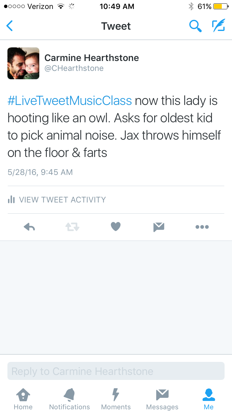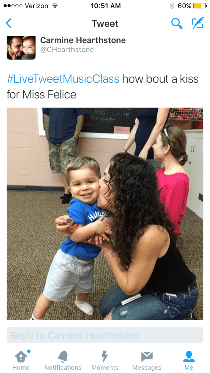 So if you haven’t ever checked out Circle of Friends Music Class w Miss Felice you’re missing out. She has stories for days. Hooked up w Brett Favre and Daughtry… Zumba with a glass of wine… All her. But the best part is. She loves the kids. We had a ton of fun this semester w her.