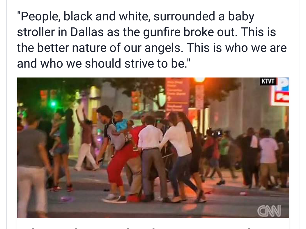 Both a sad and amazing picture of humanity. People risking their own lives to protect a baby from another person trying to kill innocent people.