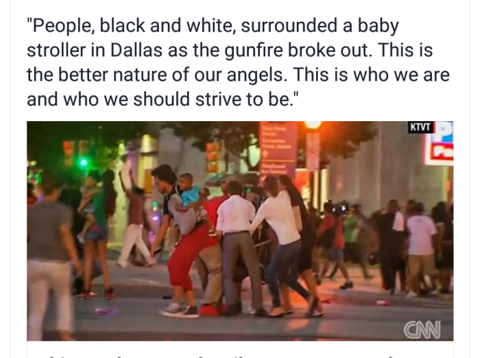 A good friend of mine just had a beautiful baby boy. And instead of congratulations the first thing I say to him is, “did you see that Dallas stuff? Great time to bring a child into this world huh?!??” (Can you sense sarcasm over the internet?)