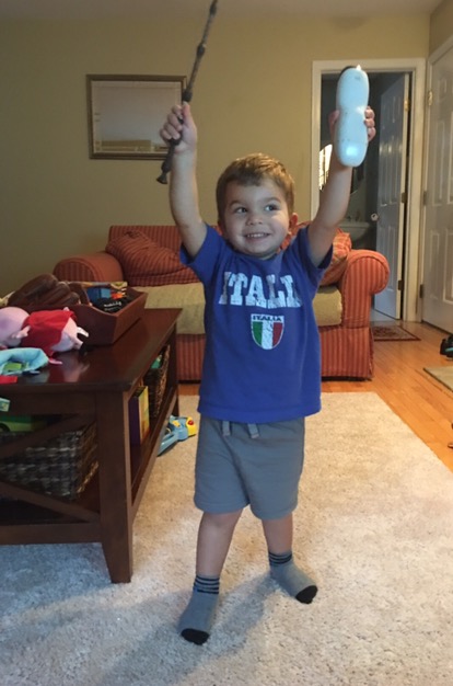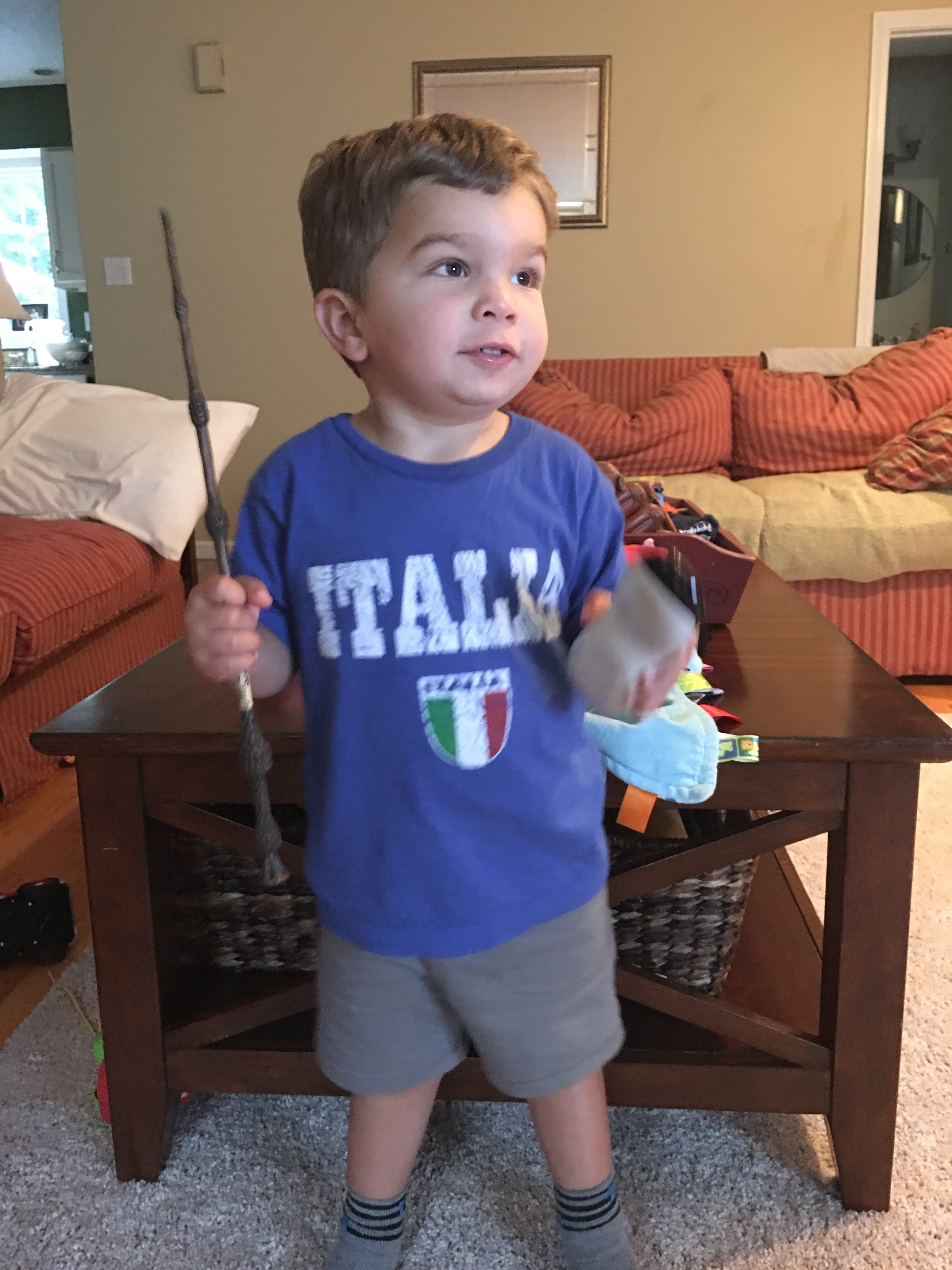 Listen little boy you’ve got a lot of growing up to do before you get to be in control of the remote. Learn to go potty on your own. Pour yourself your own bowl of cereal. I mean say a few more words before you become the true master of the Elder Wand, I mean remote control.