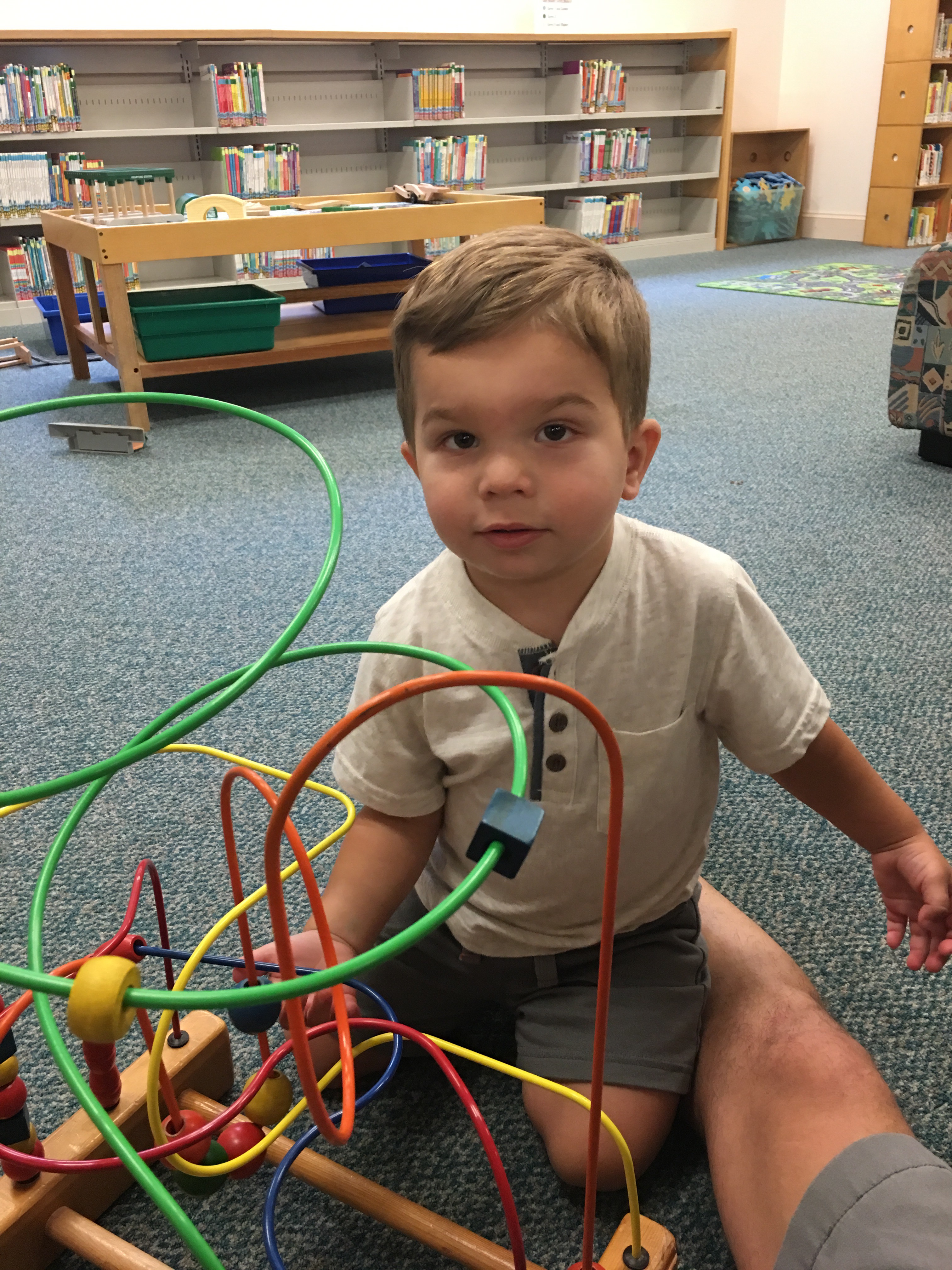 I won’t lie… Jackson had an amazing time; he played with every activity in front of him. He even sat and shared Legos with another little boy (albeit until the other little boy snatched a Lego out of his hand). But for me it was watching him sit with a book that made me smile. Watching a child, let alone your own child, interact with text is for me the most amazing and magical experience. Anyone who reads this blog regularly knows that we’ve been struggling with Jackson’s speech and the fact that he still has not developed many words. Yes things are definitely getting better… But I still worry. So to see him sit and read yesterday brought me to tears.