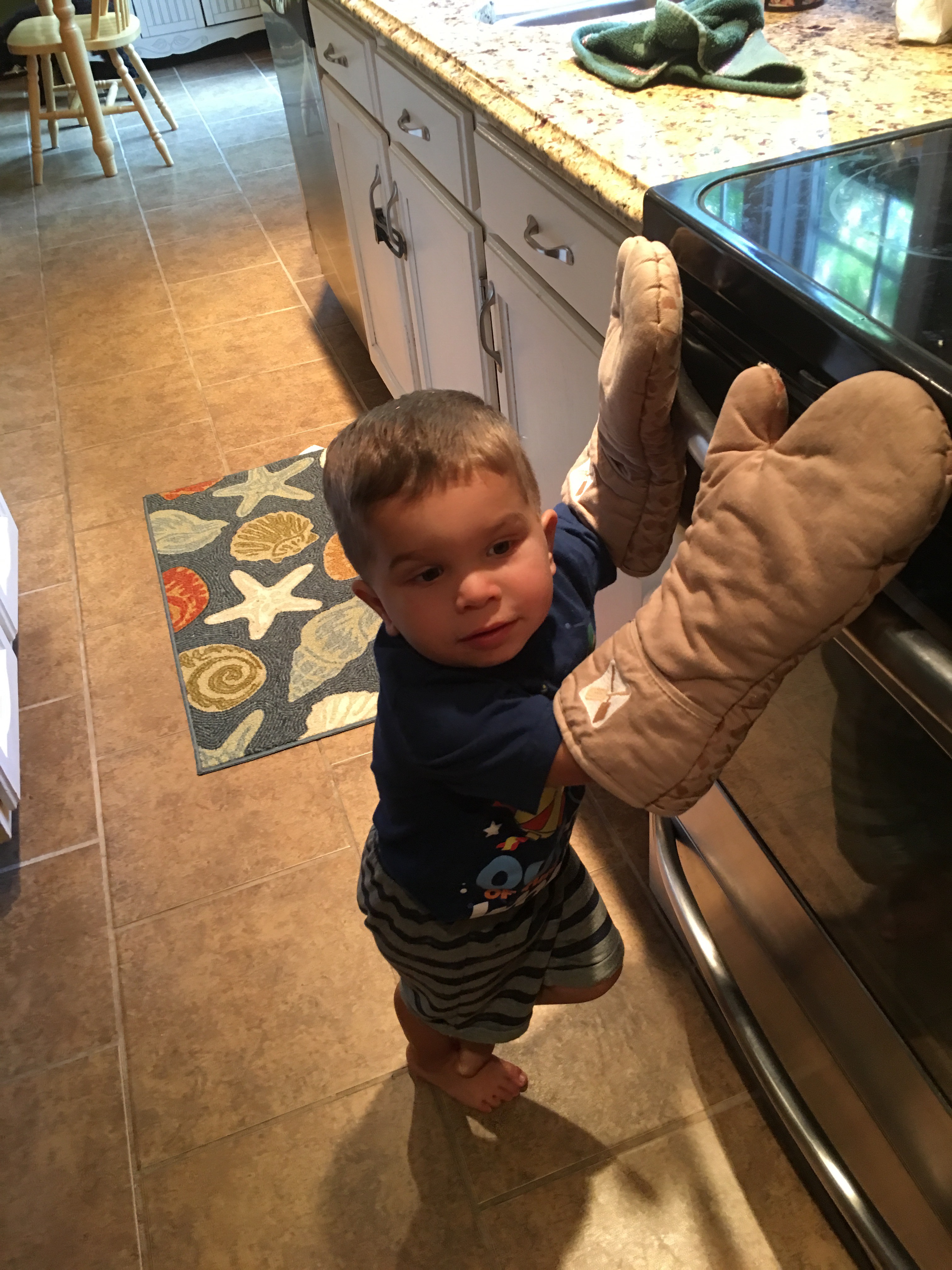 I’ve tried to, at least in the most basic ways, begin to instill in him the importance of keeping a clean and tidy house. If he throws his food, he cleans it up (by “cleans it up,” I mean feeds it to Buster and Max). He puts his plate and sippy cup in the sink when he’s done and we make him clean up his toys when it’s time to.