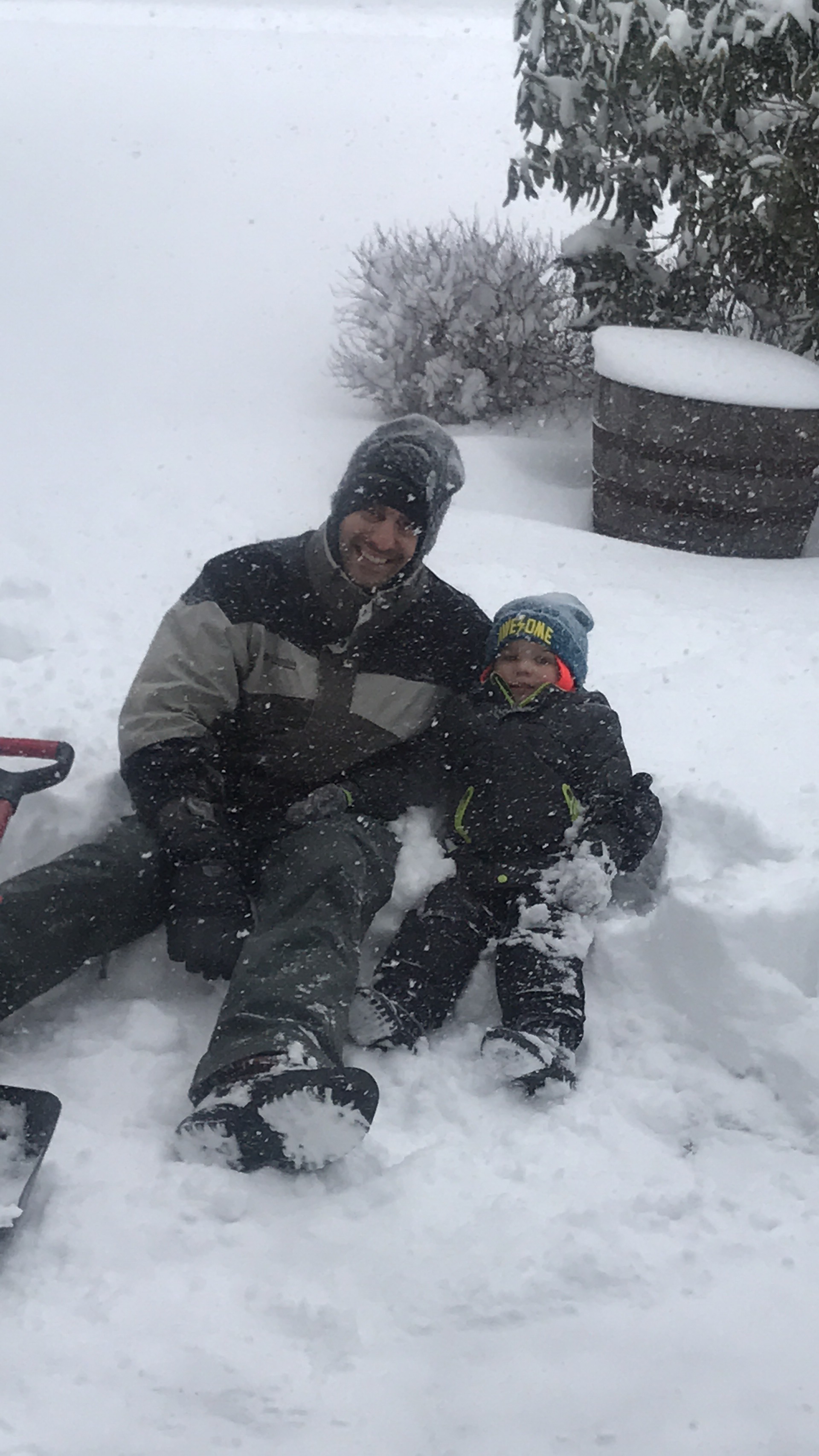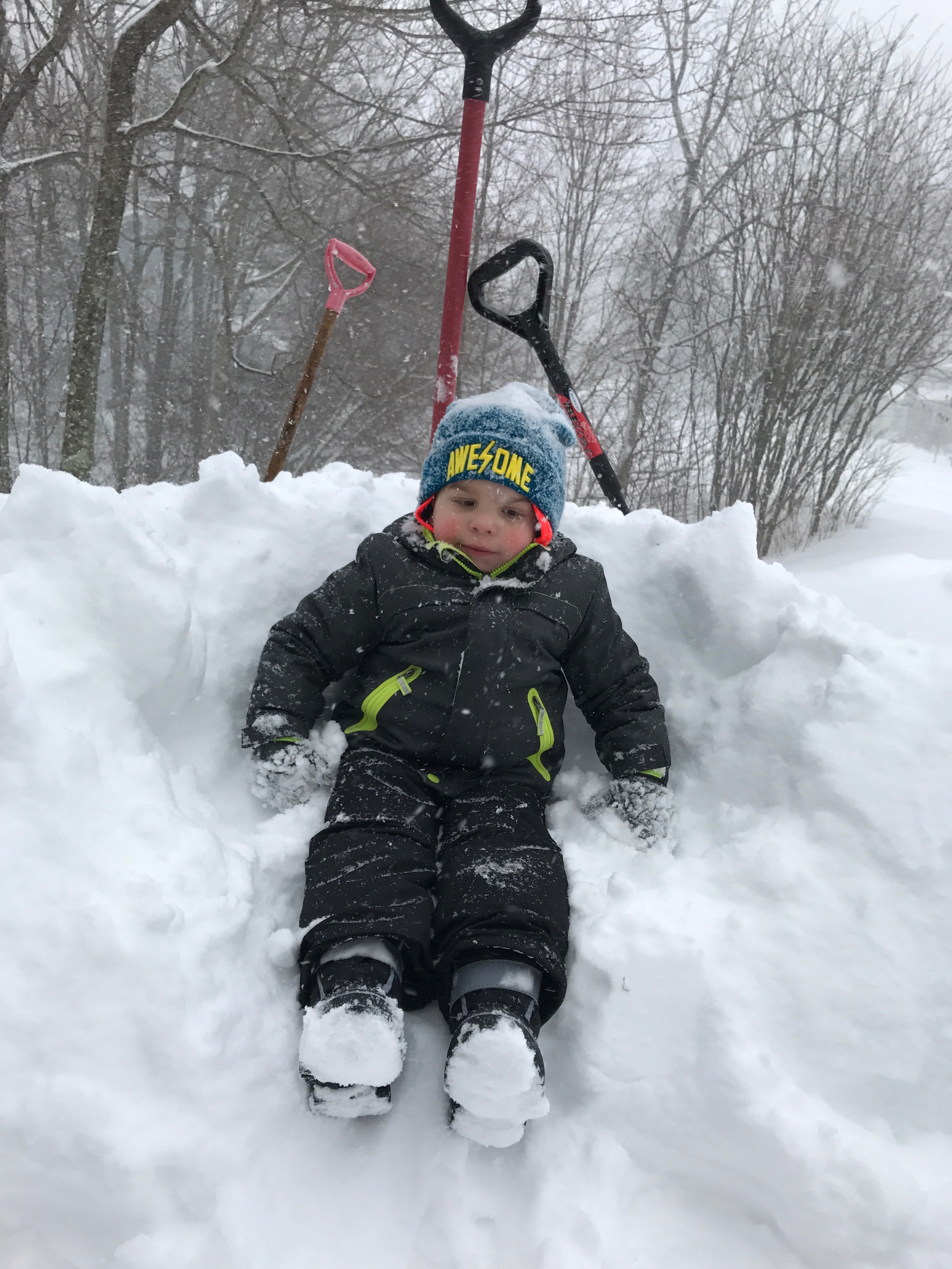 But I digress, today we were hit with a monster snow storm. It was the one we were waiting for all winter. And it didn’t disappoint. Of course Jackson was awake and ready to go at 6:00am. (Mind you on school/work days we have to pry him away from his pillow in the morning). It was like an insane asylum here this morning.
