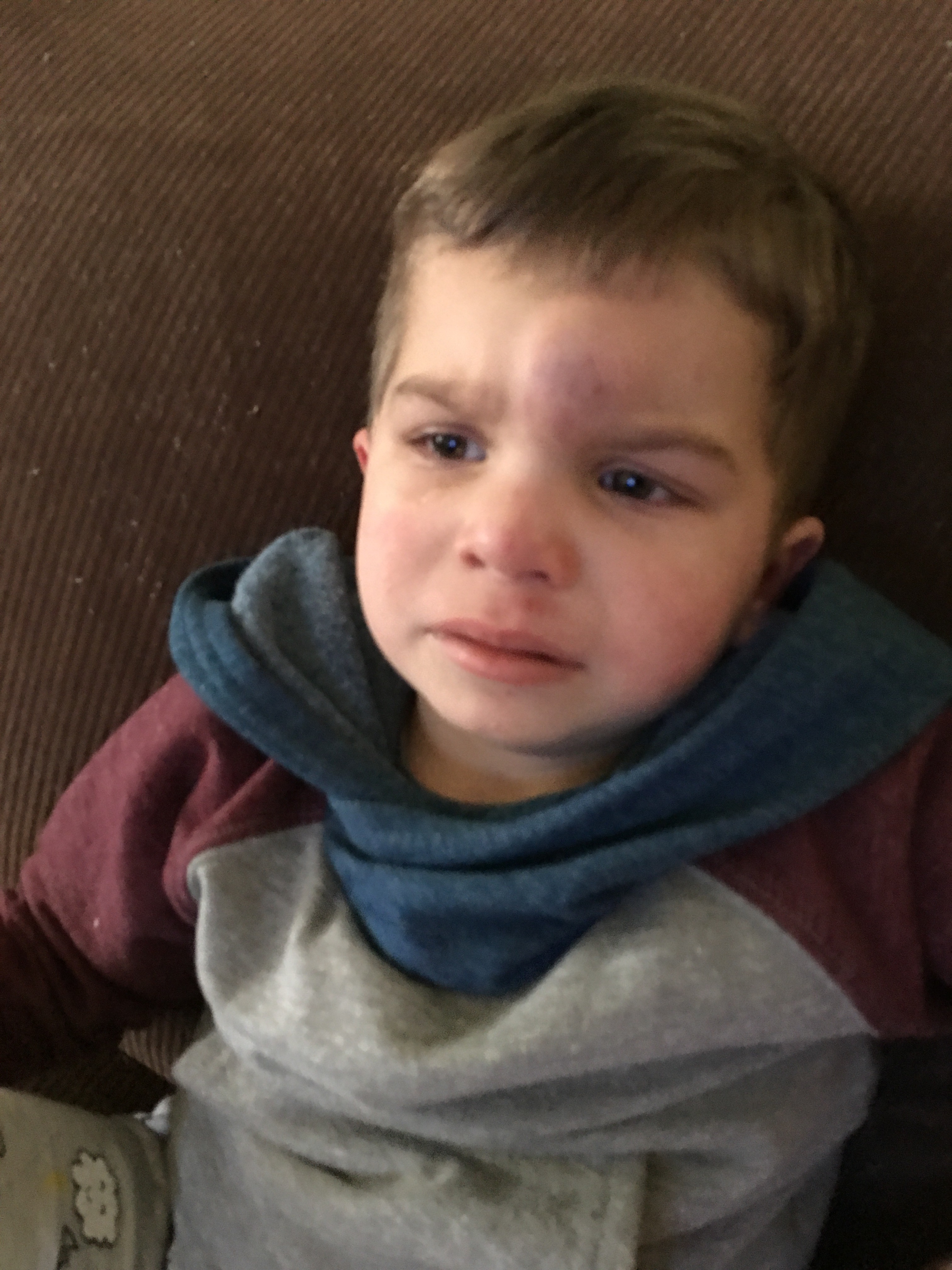 Another day, another fall. This one follows a tumble off a tricycle at school last week (mind you he wasn’t wearing a helmet, because, I was told, “tricycles are low to the ground so not much could happen if he falls off.” Hmmm???? 🤔