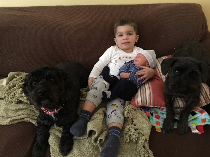 National Sibling day? I mean I guess it’s better than national footling hotdog day or national pineapple pizza day. For the past three years Jax celebrated this fake holiday with Buster and Max… however he now has to share this holiday with a miniature version of himself. A human sibling is a blessing and a curse… (I know I have two of them).