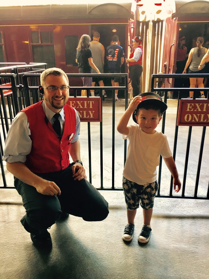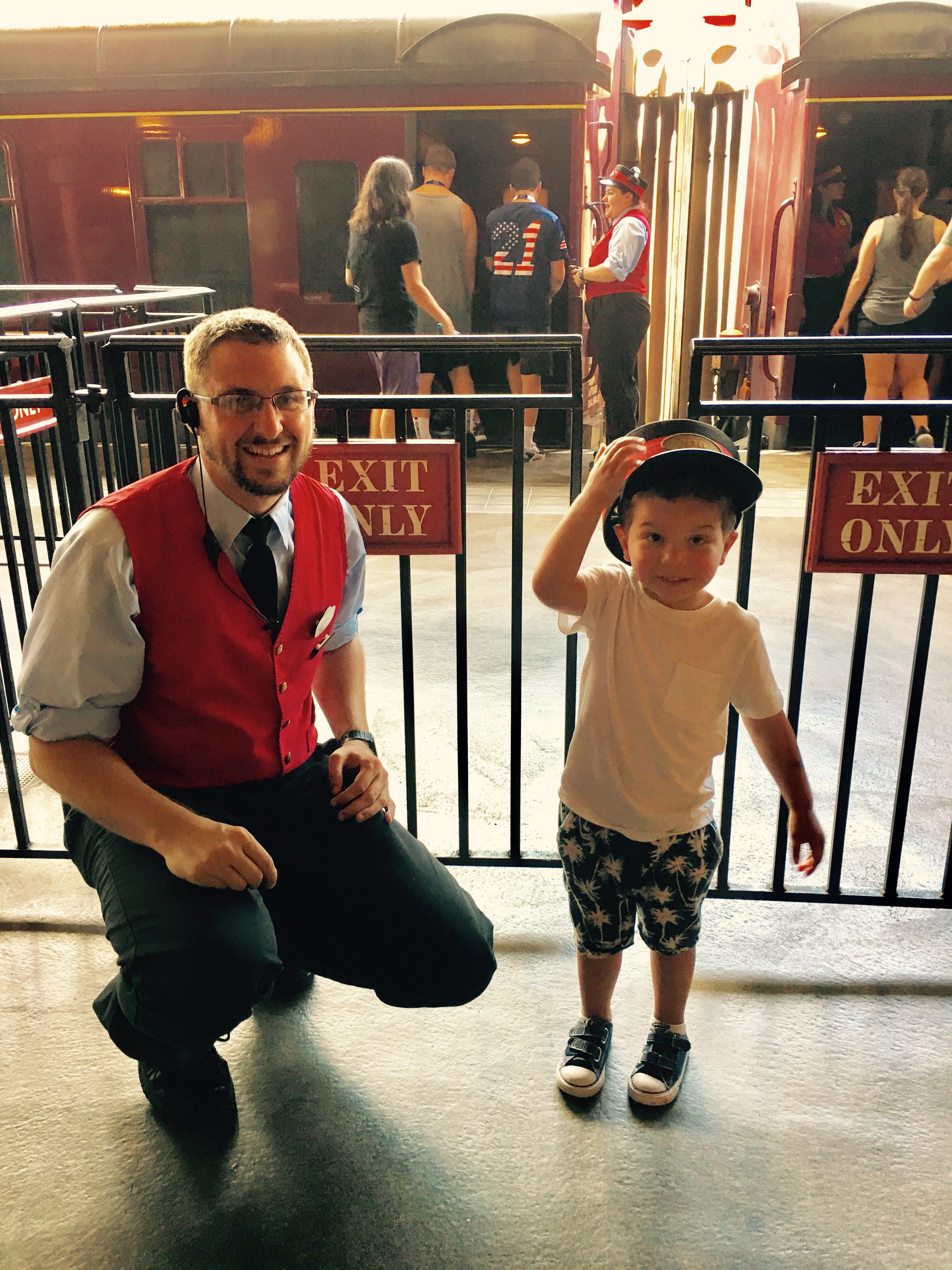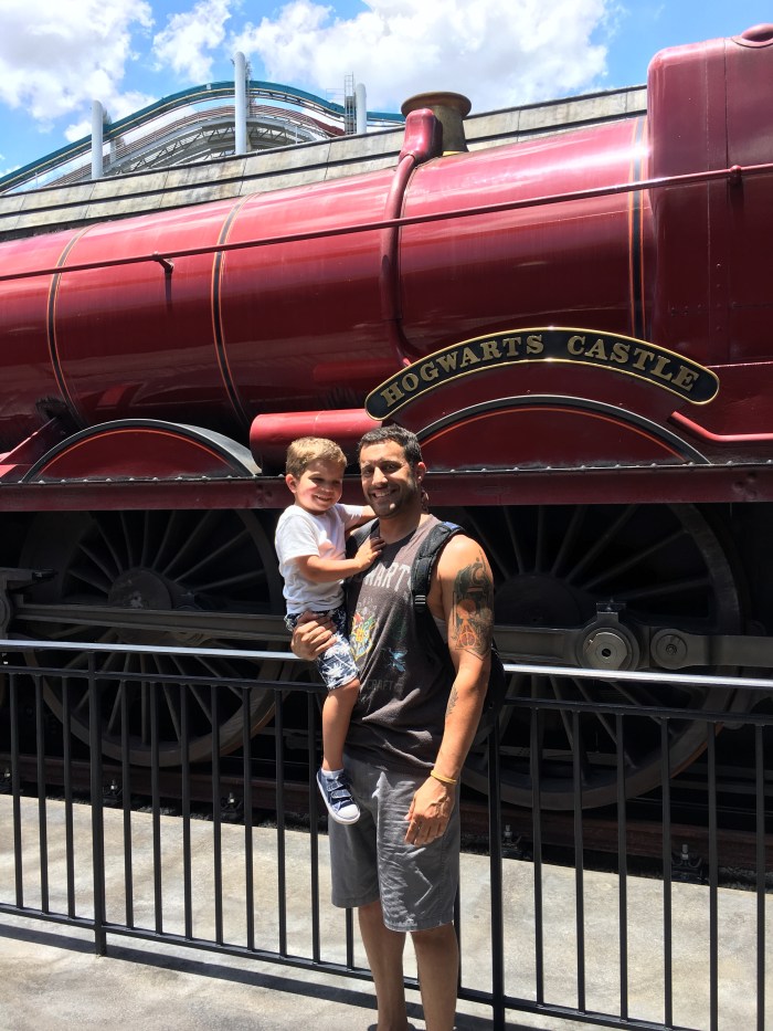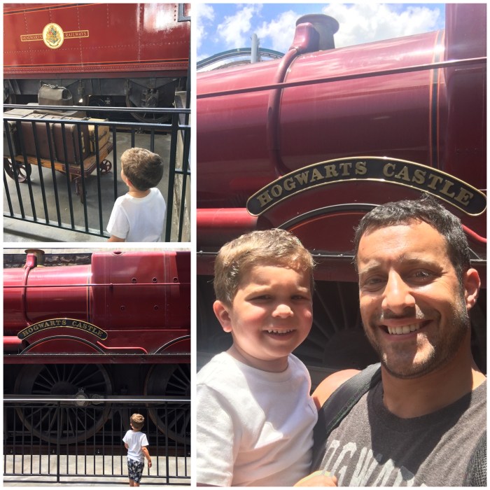 I honestly couldn’t believe that through the three hour ride, blaring sun, 103degree heat and humidity that we were finally here and he was smiling ear to ear. Then again, add a fire breathing dragon and any three year old would be enamored by his surroundings! The heat from the dragon’s fire only lead to our haste in heading to the Hogwarts Express to continue our journey (albeit air conditioned) to Hogsmeade.