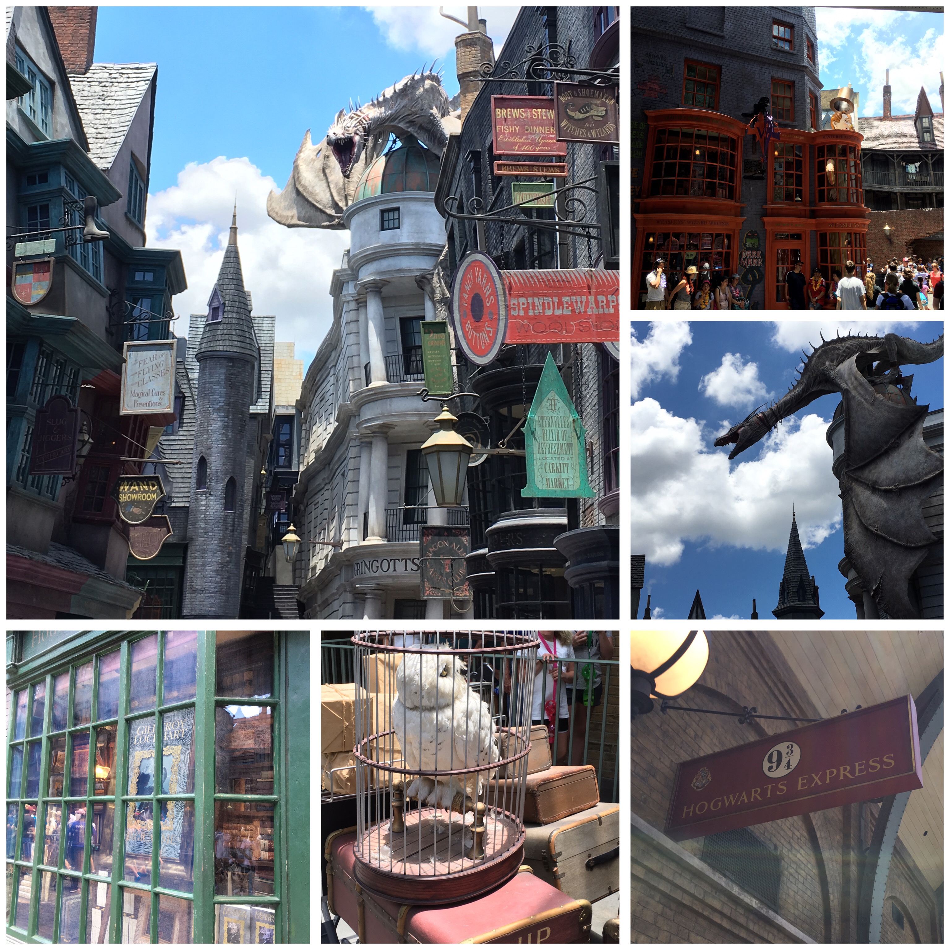 Our journey started by entering the through the brick wall behind the Leaky Cauldron into Diagin Alley. “Theee up and two across” and we were able to gain entrance to the wizarding world. I’m not sure who was more excited to see the Monster Book of Monsters tearing up pages in Flourish and Blotts, or the demonstration of Fred and George’s Puking Pastilles. He literally was like a kid in Honeydukes (a candy store).