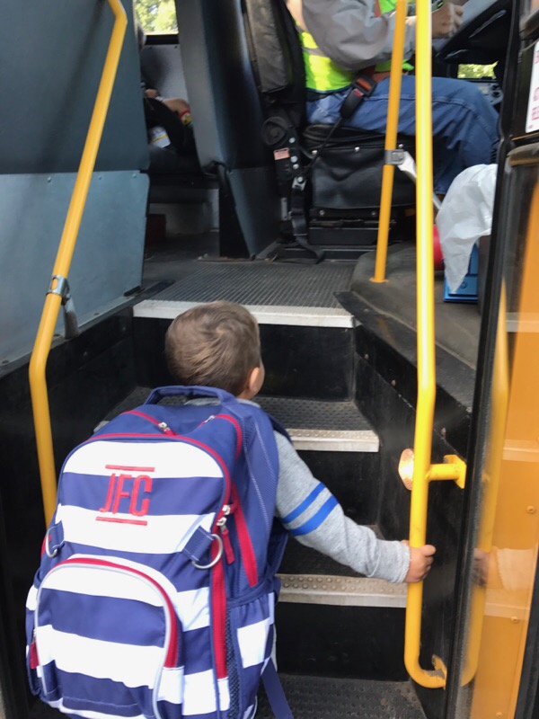 Poor little guy was sick all day and night. The sadness on his face as the “boosebus” drove by and he couldn’t get on 😢.