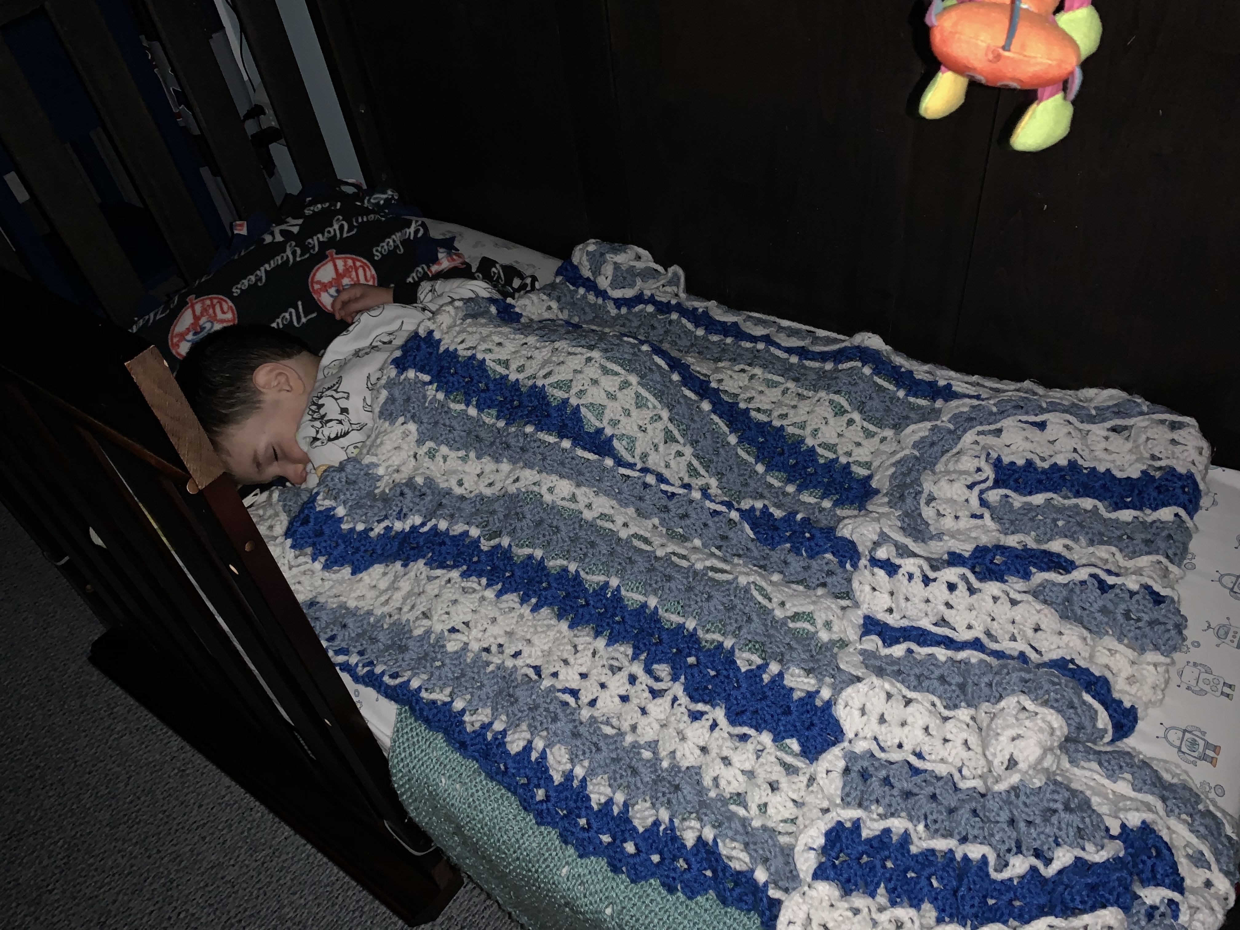 And in the end… the way end (like 10:25pm- three hours after we first put him to bed) he fell asleep in his old crib, zip ties and all, and we won… Sort of.