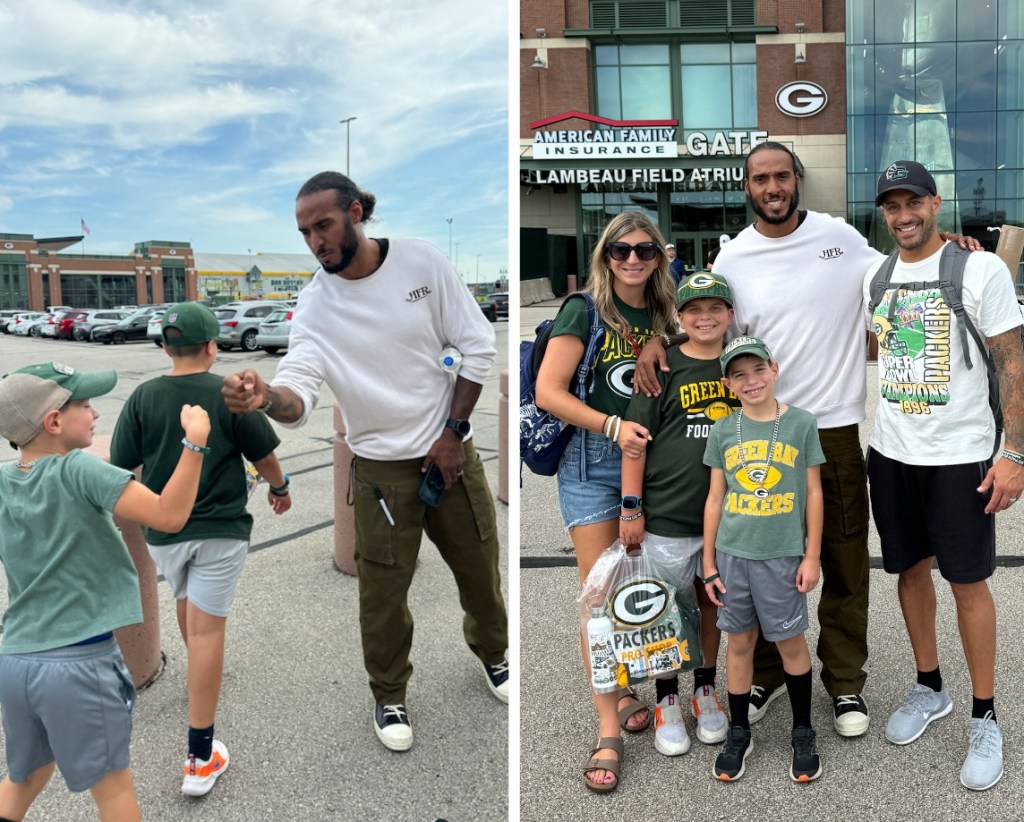 And then there was Oliver, standing with Super Bowl champion Ryan Grant, getting a lesson in running back technique. No crowd. No pressure. Just a former Packer passing down knowledge to a kid who dreams in green and gold. That’s the kind of moment you don’t fully understand while it’s happening—but you know it will matter forever.