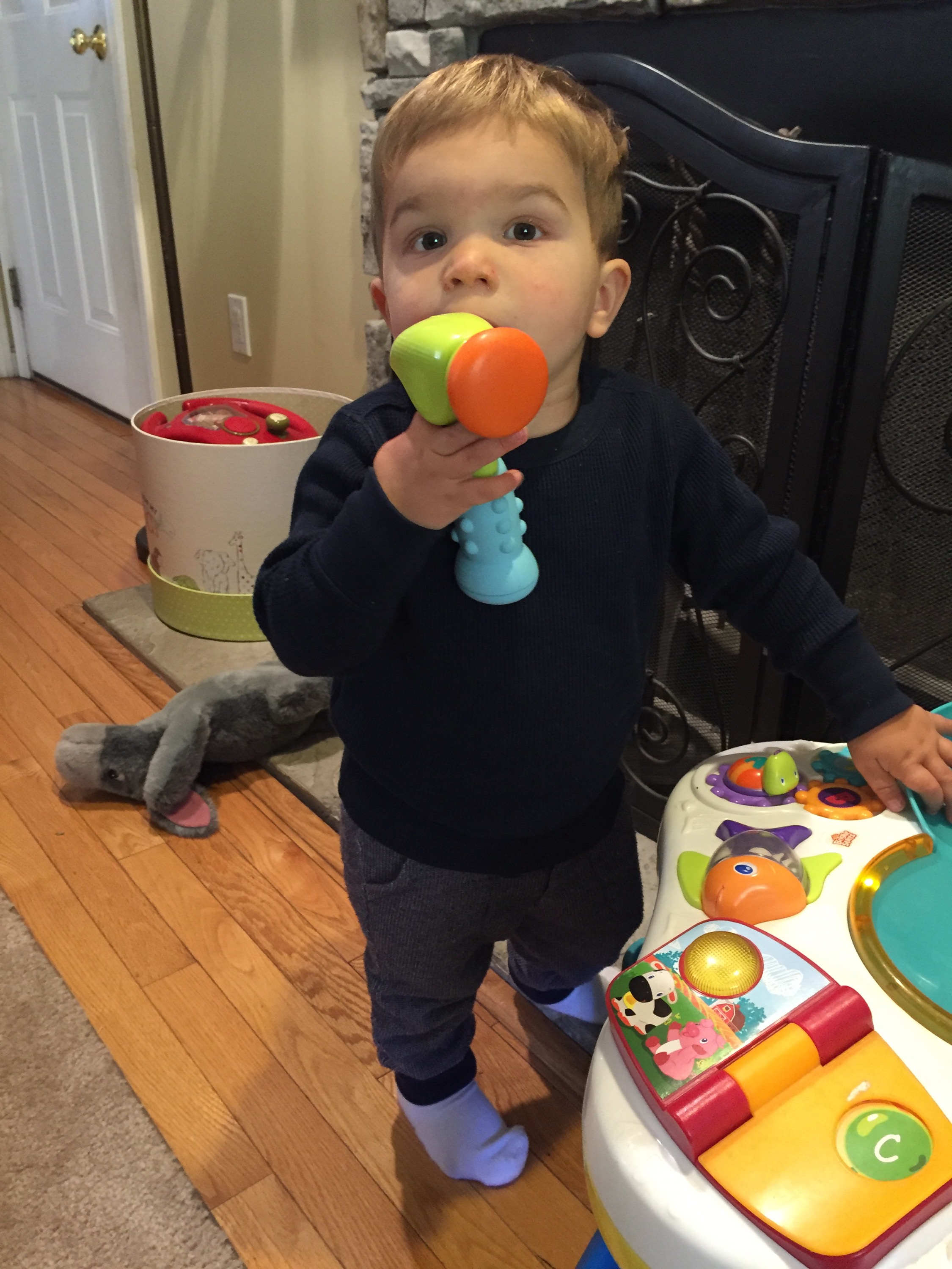 Everytime I turn around this kid is doing something amazing. Feeding himself with a spoon (granted he usually launches it across the room after a bite or two), climbing on the couch all by himself or putting on his own shirt (with some help). I can’t help but feel like I’m missing half his life.