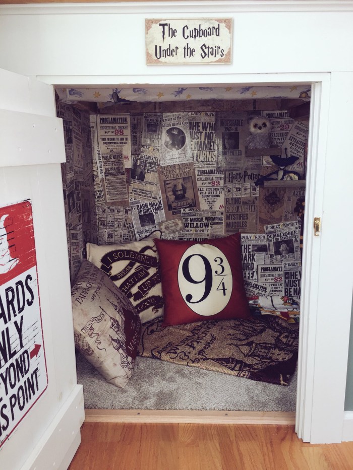 There was something about this house that stood out the first time I walked inside… it wasn’t the normal things that people might notice like a kitchen, bathroom or storage space… it was The Cupboard Under the Stairs that stood out for me. Immediately I knew I would have some pretty big plans to carry out. As an elementary school principal and former teacher I know how important it is for children to have a space of their own to read and do school work, and a space where they feel comfortable. Clearly I took my inspiration from the famous cupboard where Harry Potter spent most of his childhood.