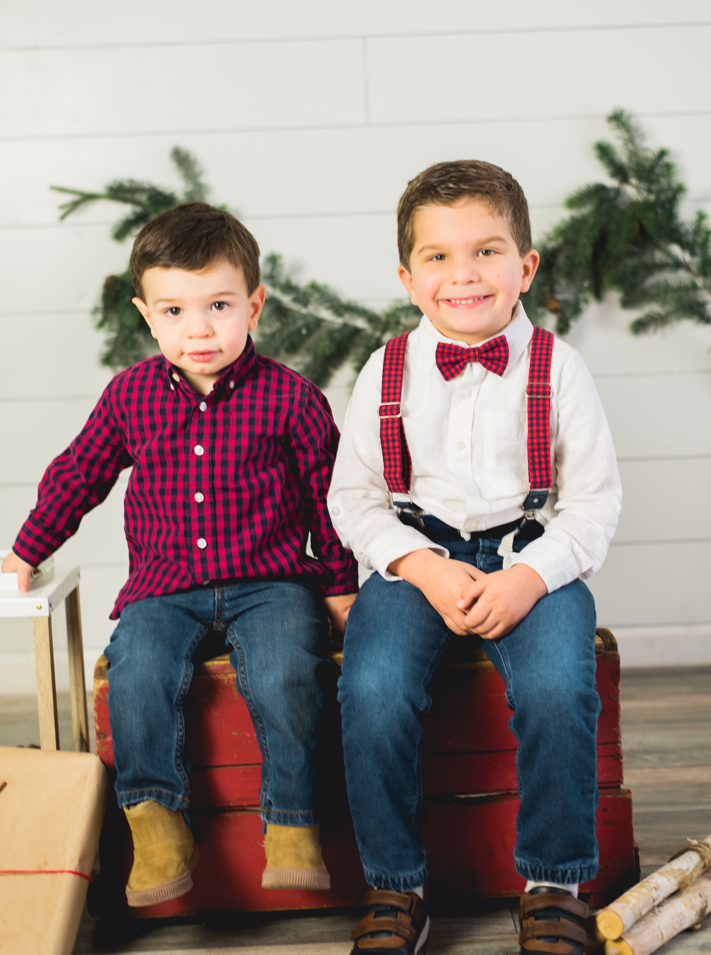 We try to take it easy. We (Santa) buys lots of books and puzzles. This year we are going to have Jackson pick a few old toys to donate to someone in need, as he replaces those he donates with new ones Santa brings him. We aren’t naive to think that Christmas isn’t about presents, but I think this mom and dad also relish in the little things as well… a healthy and happy family. Two little boys who love each other and most importantly the fact that we got them to sit long enough with each other to get a decent Christmas card! It’s a Christmas miracle.