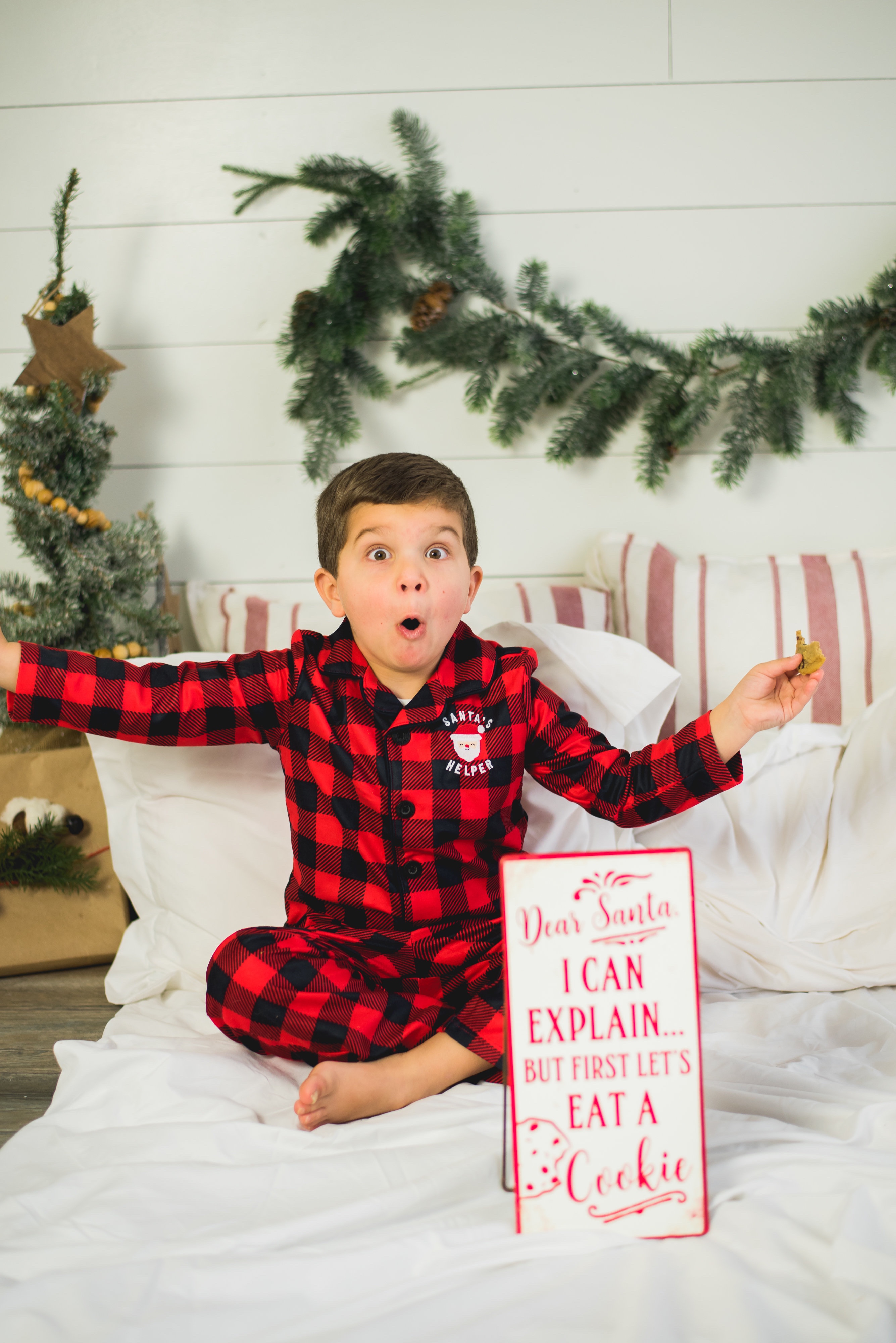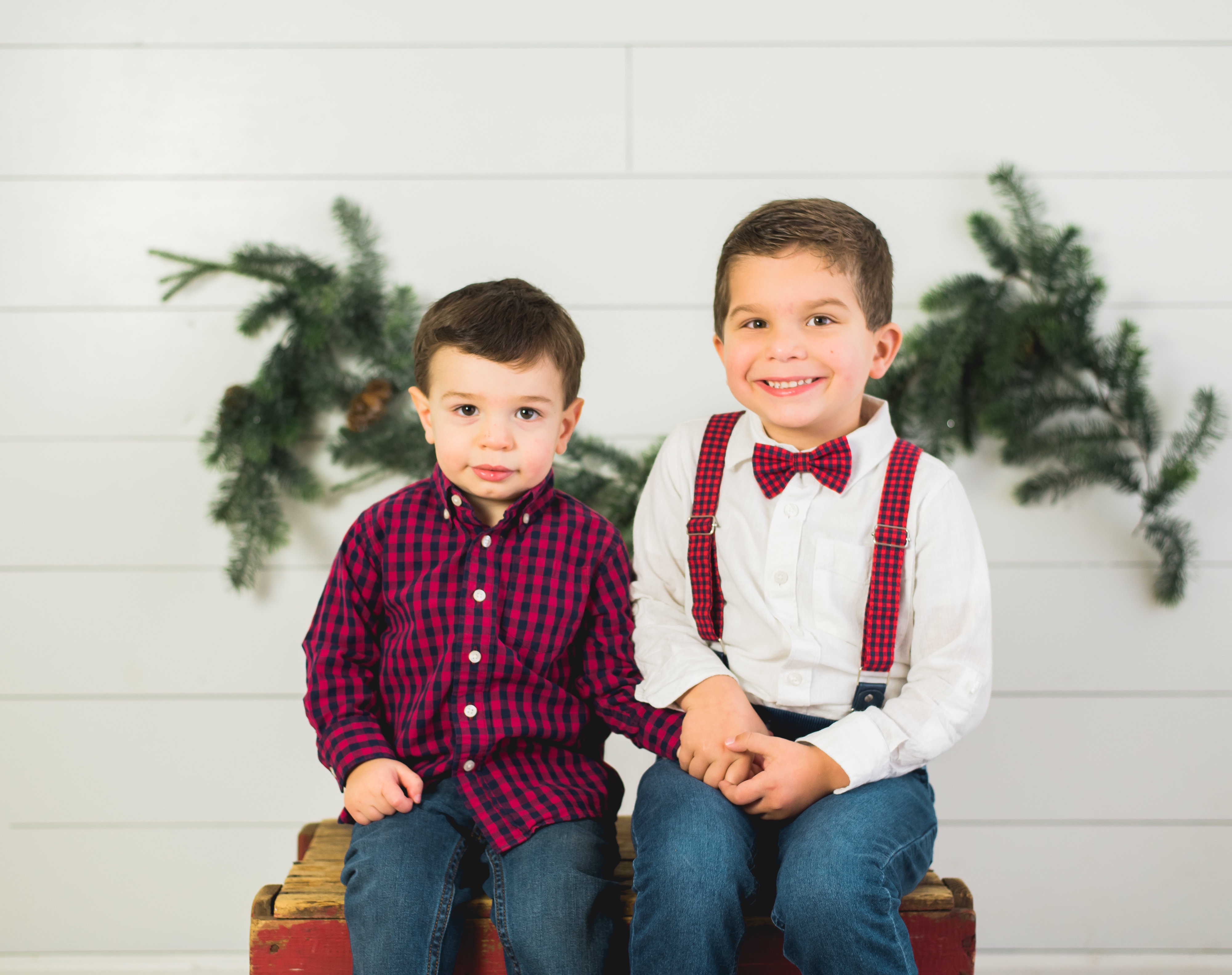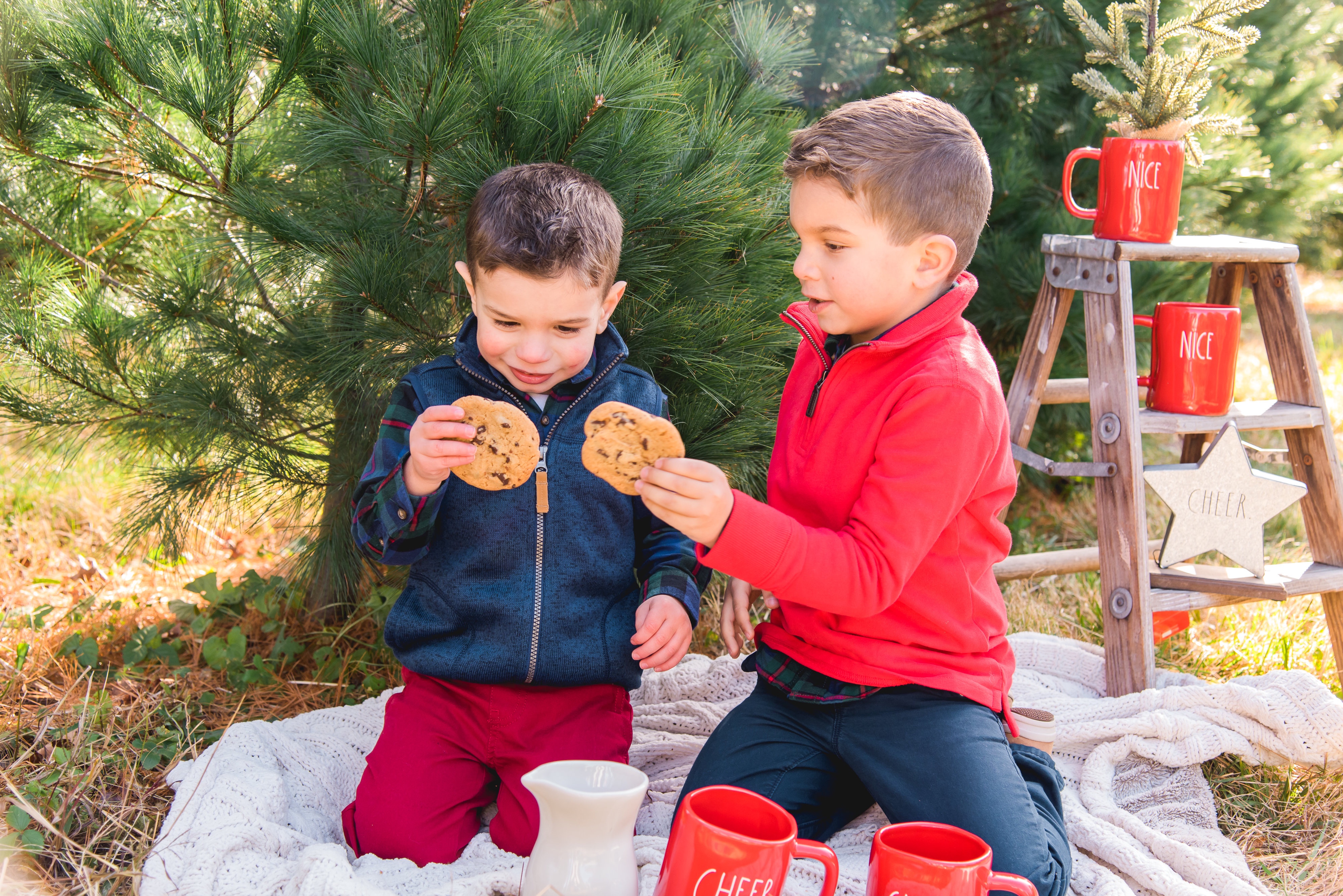 Props are just par for the course when taking Christmas photos. They can provide the perfect backdrop for two brothers. The trick is getting that photo snapped before the props become weapons. The beautifully painted wooden “Let it Snow” sign that bear the calligraphy of a professional become shields for chocolate-chip cookie ninja stars.