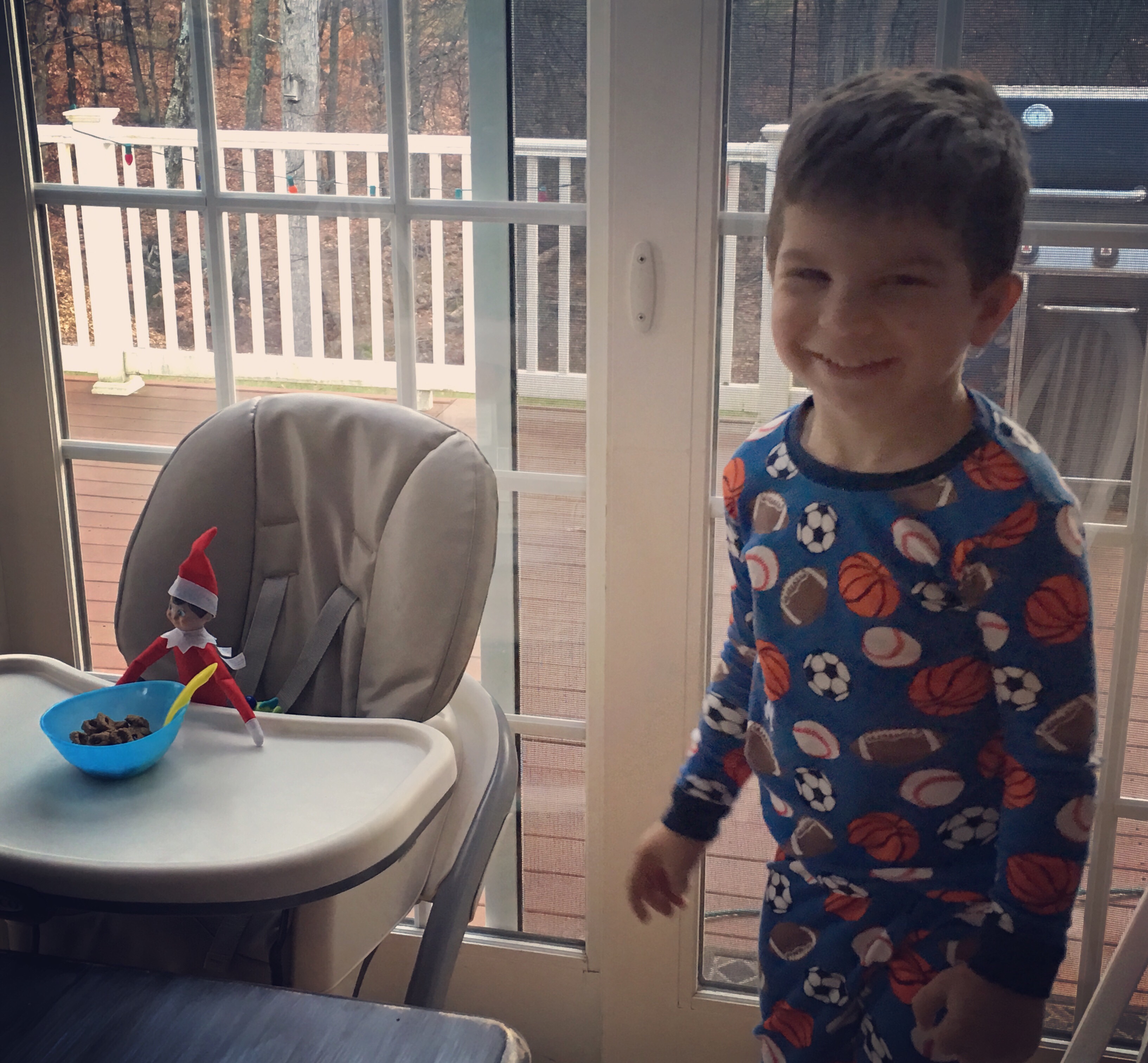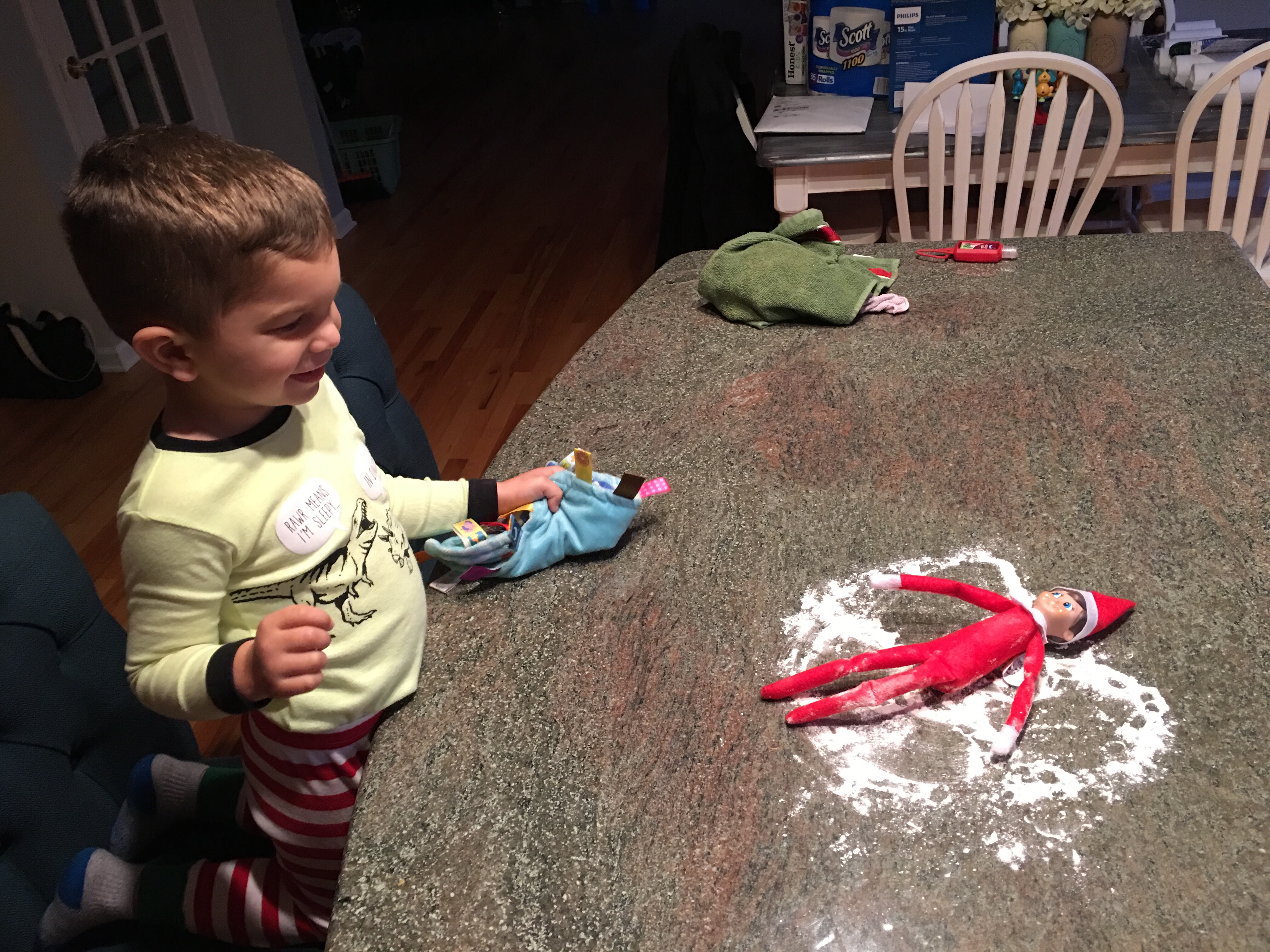 I’m not sure how or why Elfie makes such a difference in some households… maybe it’s because here we don’t spend six hours suspending him and props from the ceiling with elaborate decorations… but our kid could care less about this thing, who he reports to and what the repercussions may be from misbehaving.