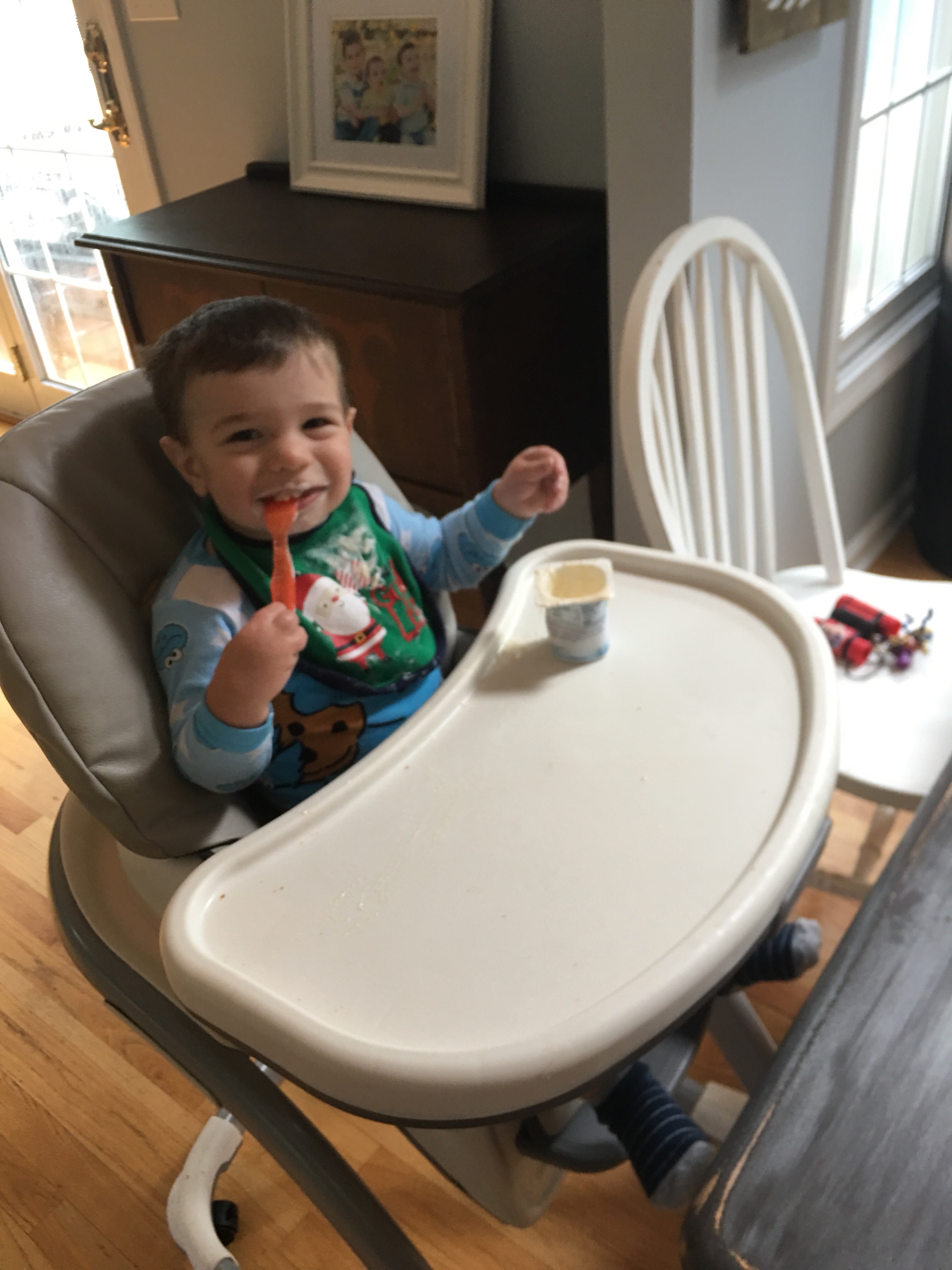 How is it possible that this kid is feeding himself right now? And realistically he’s doing it and keeping it pretty clean. I have a four year old who can’t eat this neatly.