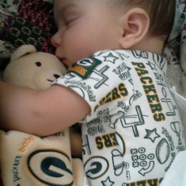 That’s why we bought Jax one of those Dream Scape lights that shine cute little shapes on the ceiling for them to stare at while falling asleep… Except this light shines the GREEN AND GOLD “G” brightly for my little man to enjoy and comfort him as he dreams of Lombardi Trophies… Multiple ones.