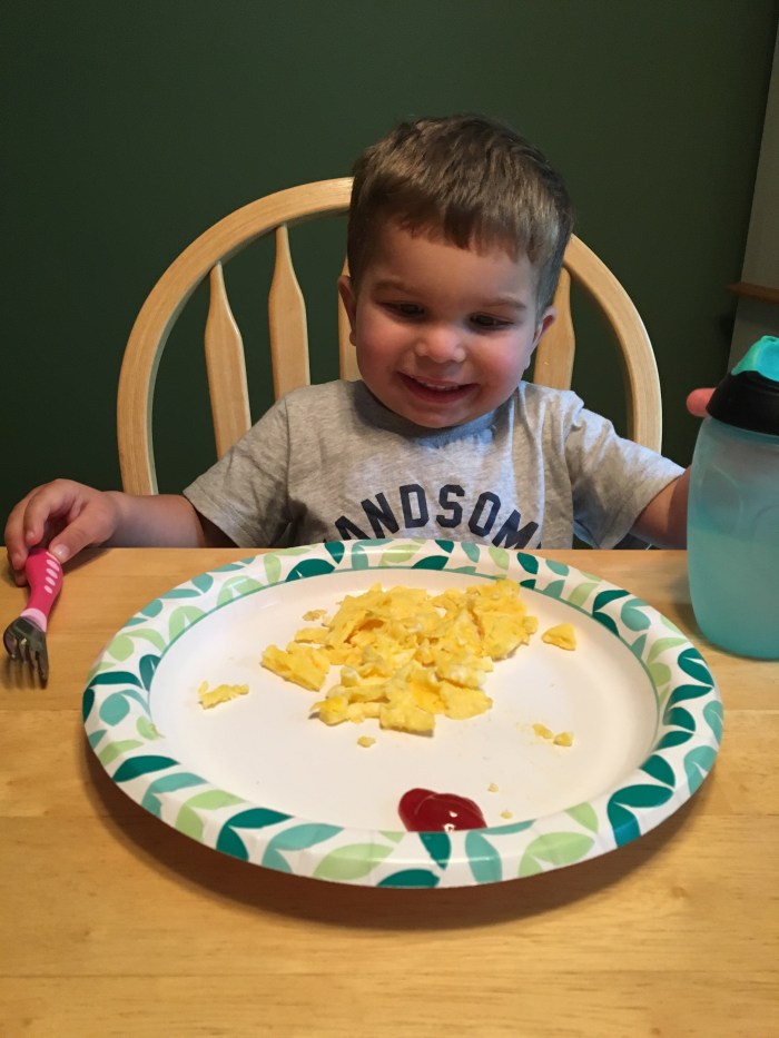Who the heck puts ketchup on eggs?!!?? It’s not normal. As a matter of fact it’s un-American.  I am 100% serious when I say that if this kid is a ketchup on eggs kind of guy he’s getting left on his aunt and uncle’s door step Harry Potter style.