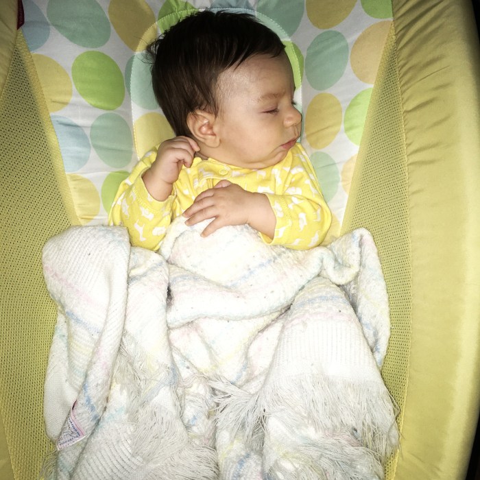 I thought I had this parenting thing all figured a while back when Jackson hit a groove and was easing up on requiring parental services for every part of this life.  When the new guy came along we hit our stride pretty quickly and got a routine up and running the minute we were home from the hospital. For the first few weeks, the baby would sleep in the doc-a-tot thing or even in the Rock and play. I had no worries of long sleepless nights and knew once Oliver checked out A-OK for allergies this was going to be a piece of cake.