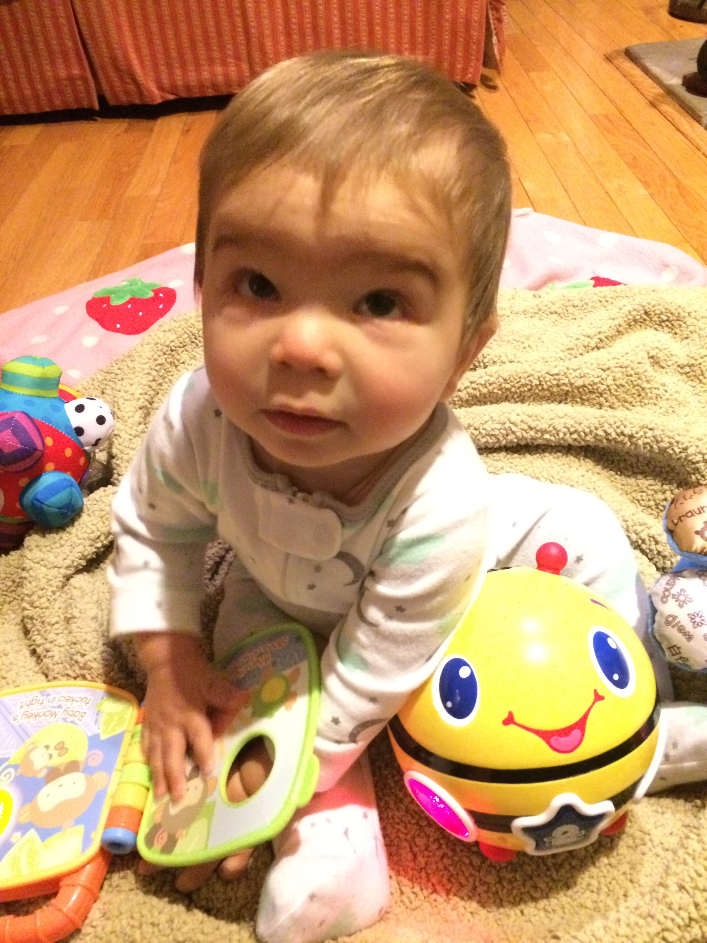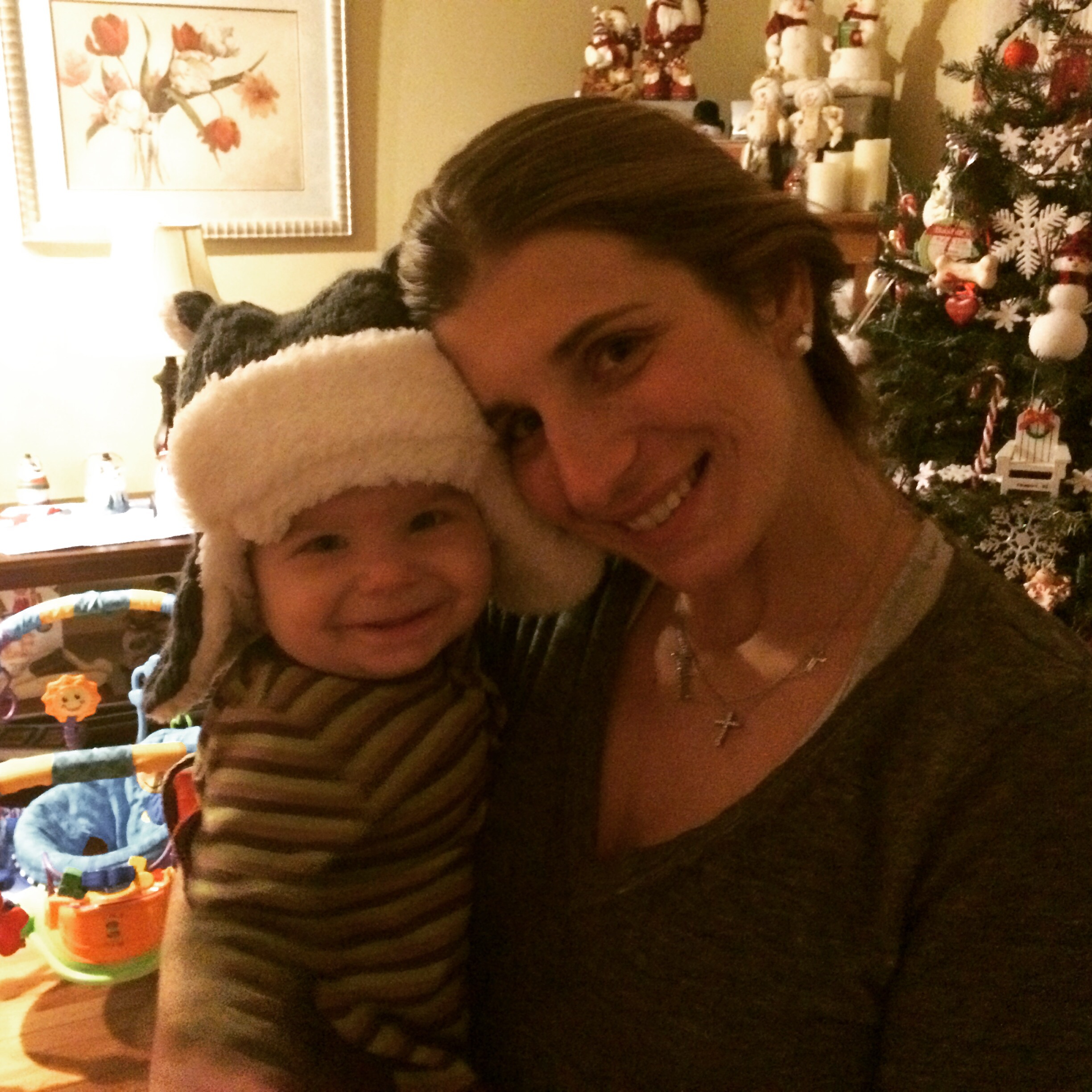 Over an hour to get ready.  Mommy showered, daddy showered (surprisingly)… everyone got changed.  Don’t forget that getting changed for a six and a half month old means a diaper change, 17 layers of clothes… fitting a tight pair of jeans on over his butt, fitting a onesie, shirt and sweater over his massive head… etc, etc.