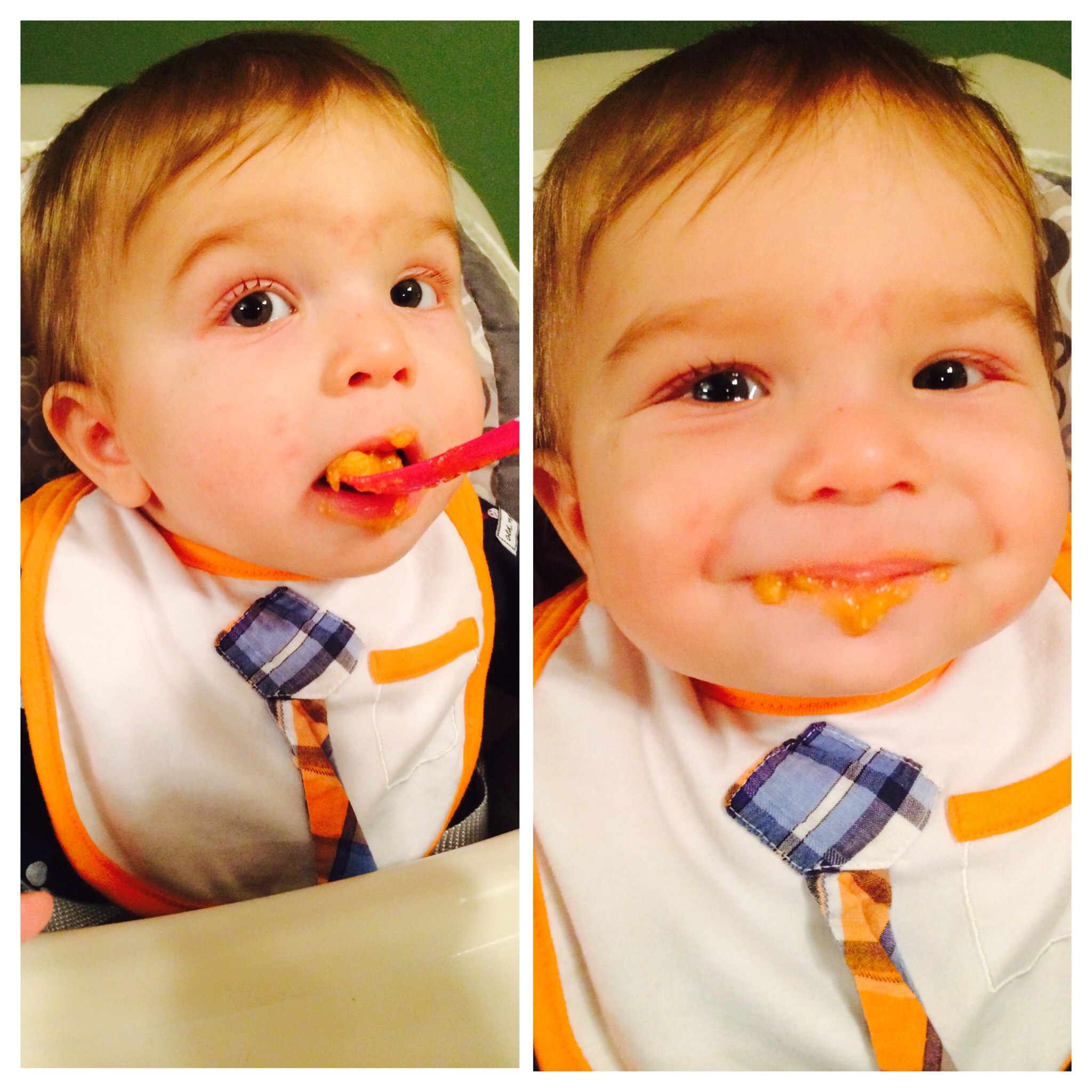 Yet, nothing stops the little guy from enjoying his breakfast of champions.  He ate the whole thing, and it didn’t result in me OR him having to change!