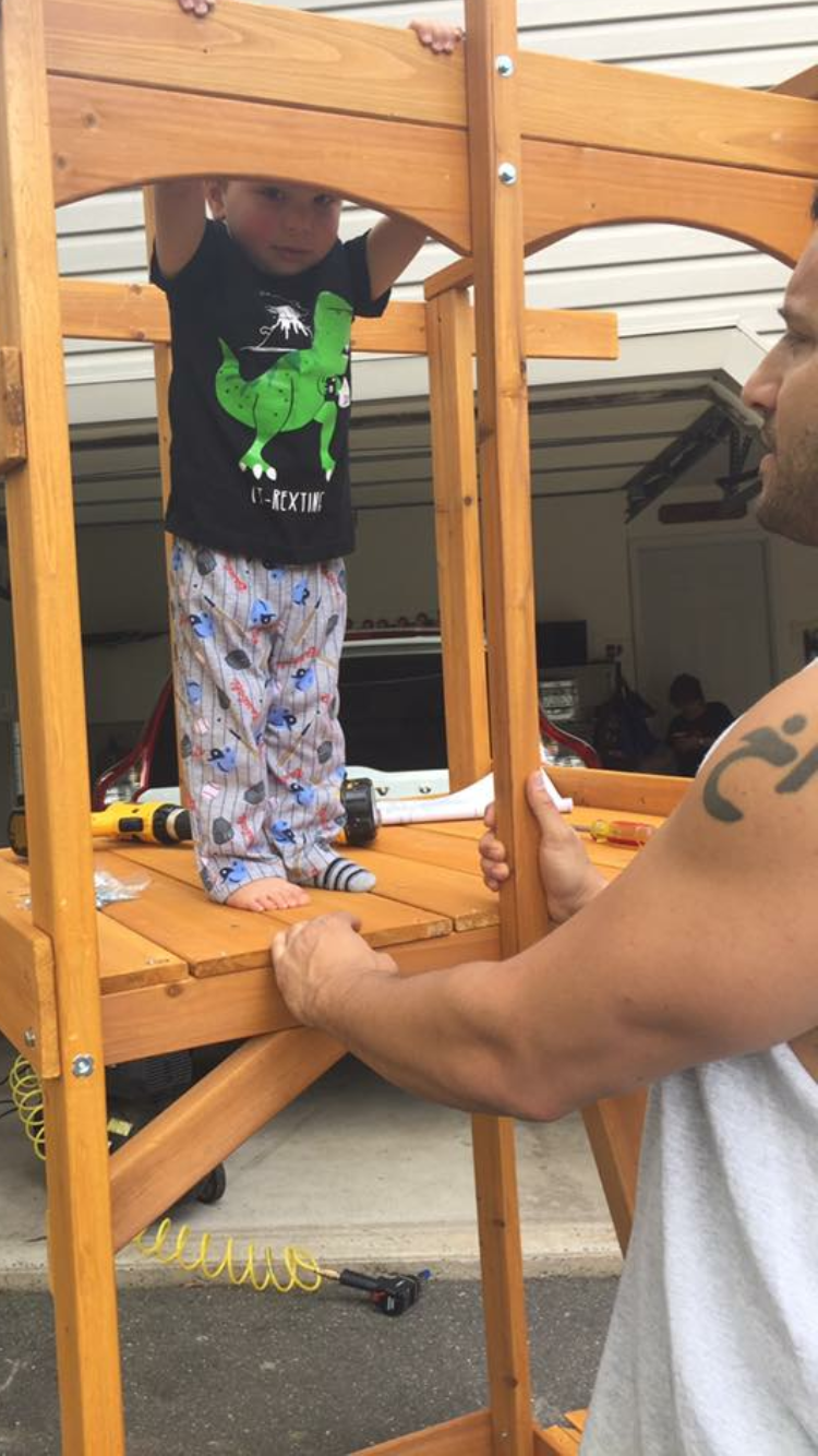 What should have taken 25 minutes. No tools. 7 total pieces and one person to assemble…