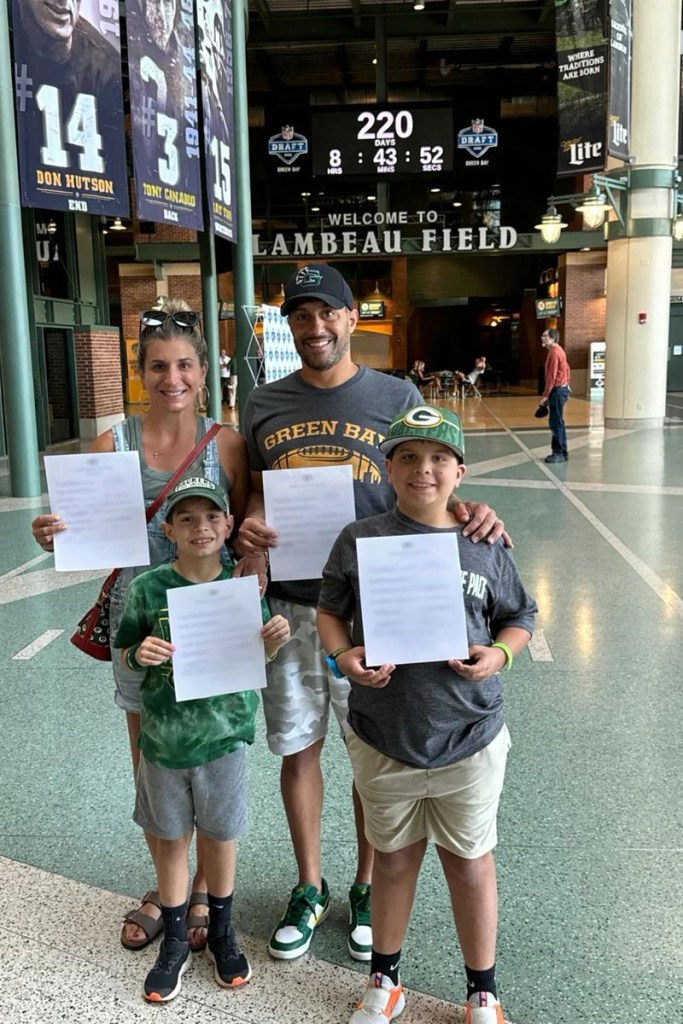 I had been to Lambeau Field before—twice, actually. Once with Stephanie which resulted in me catching Jordy Nelson in Lambeau Leap and once for a -19* playoff win, so I knew what it looked like, what it felt like, how it somehow manages to feel both massive and intimate at the same time. But I had never been there like this. Never with both of my boys. Never with the four of us together. Never as three Packers owners standing side by side, carrying a tradition we’ve talked about endlessly at home into the place where it actually lives.