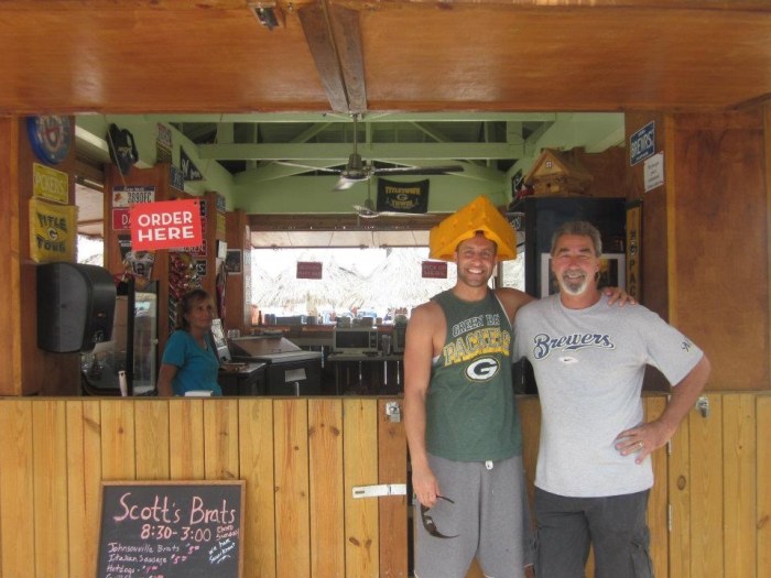 I feel like it’s been about 100 years since the last time I visited Scott’s Brats, a small beach front stand that serves authentic Wisconsin food. The best part is Scott, the owner, is a HUGE Packers fan.