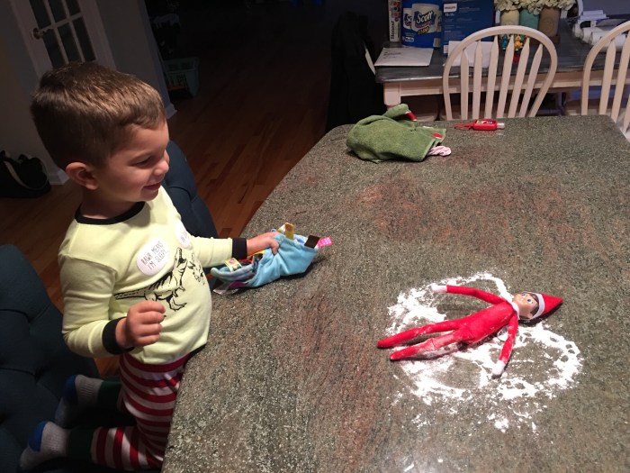 Jackson really enjoys finding him each morning and this year is Ollie’s first time being interested…even with that though, it’s a good thing we don’t do the social media thing with our elf… he would have been embarrassed by this who situation. Sorry Elfie. Sorry.